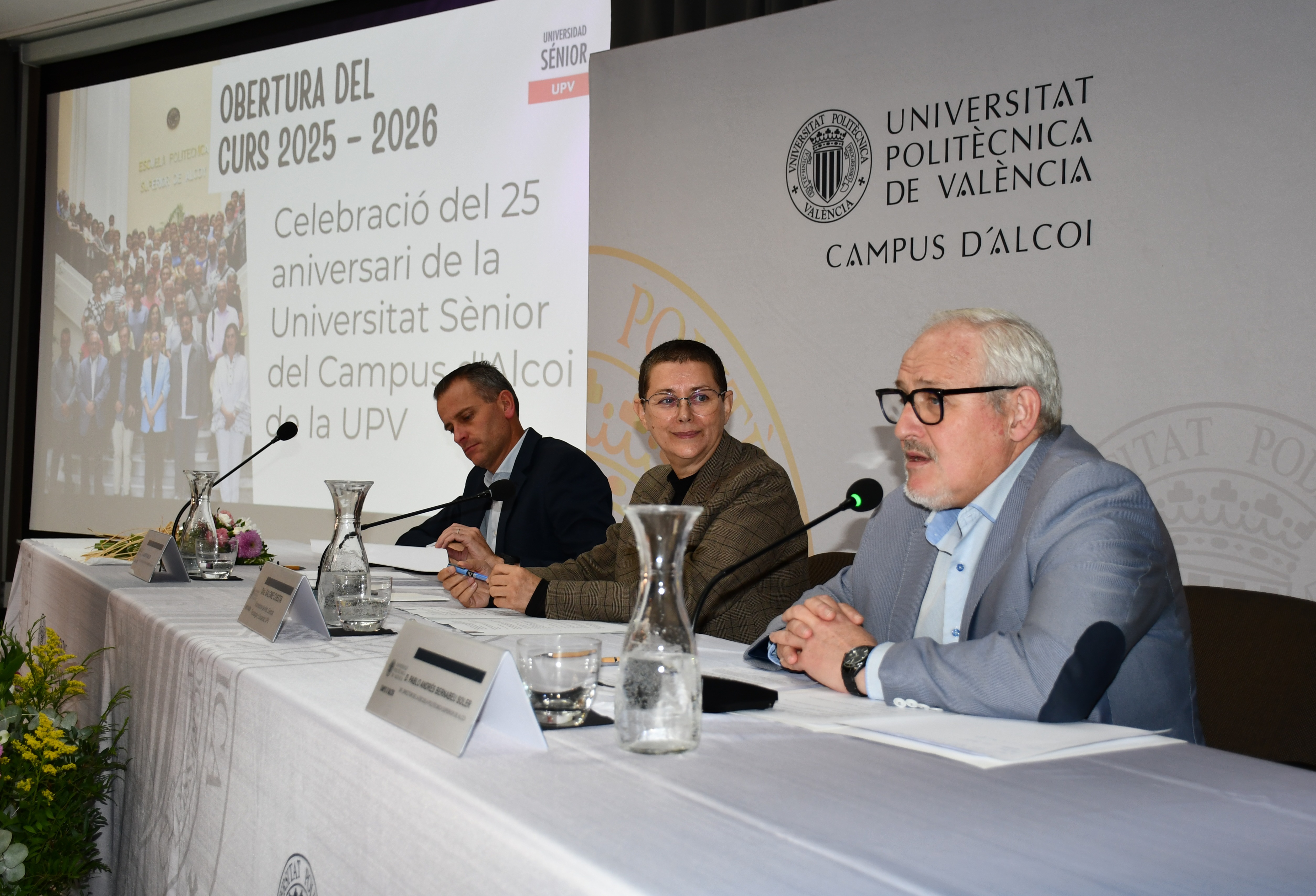 En l'acte d'inauguració del curs ha intervingut Ana Muñoz, responsable de la Universitat Sènior en la UPV, qui ha destacat l’evolució del programa i l’entusiasme de l’alumnat durant estos 25 anys amb un emotiu vídeo. També s’ha reconegut la trajectòria de les alumnes majors de 85 anys, "que acumulen una dècada de participació acadèmica", a les quals se’ls ha lliurat un ram de flors com a mostra d’agraïment.
