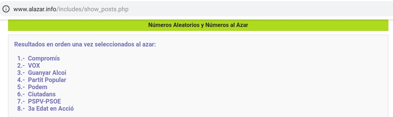 L'ordre d'intervenció ha sigut diferent en cada vídeo, i l'hem sortejat en una aplicació en línia, amb el següent resultat: