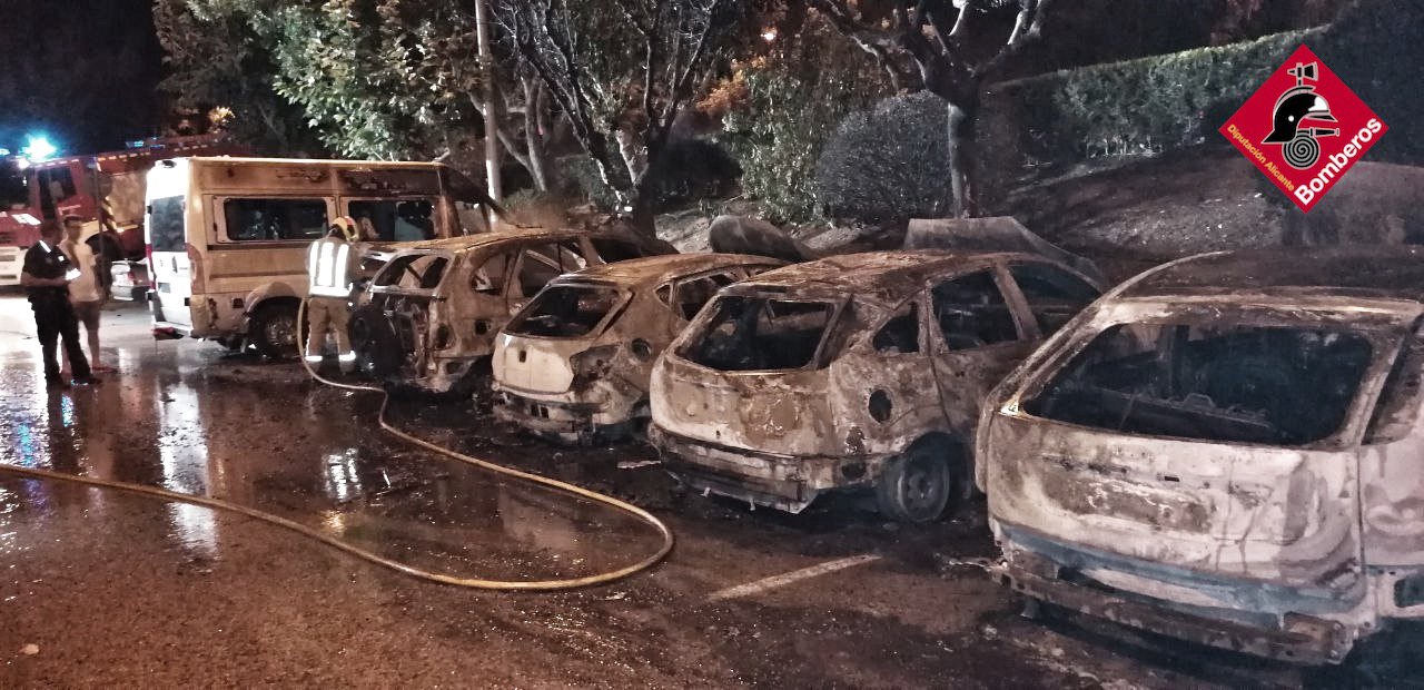 L'avís va entrar passada la 1 de la matinada d'aquest 2 de juliol, per un incendi en un pàrquing en superfície a Xixona. Al lloc hi havien estacionats vora 30 vehicles, i el foc ha afectat 9 cotxes, dels quals 6 han quedat calcinats.