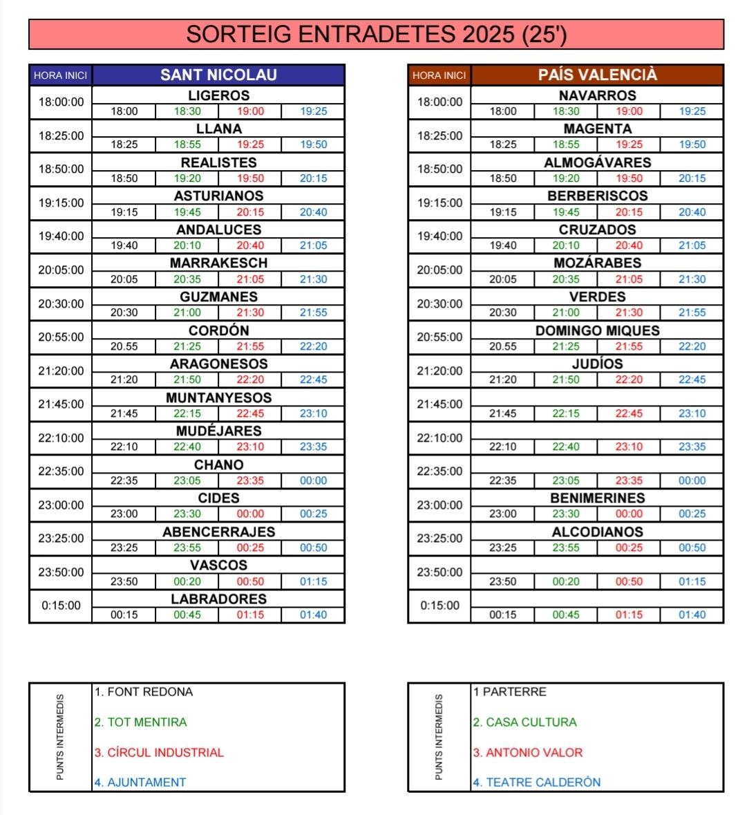 I el 25 d'octubre serà la jornada central del Mig Any, amb el concurs d'Olleta a la Glorieta i les entradetes a partir de les 18 hores. A continuació podeu consultar els horaris de les Entradetes.