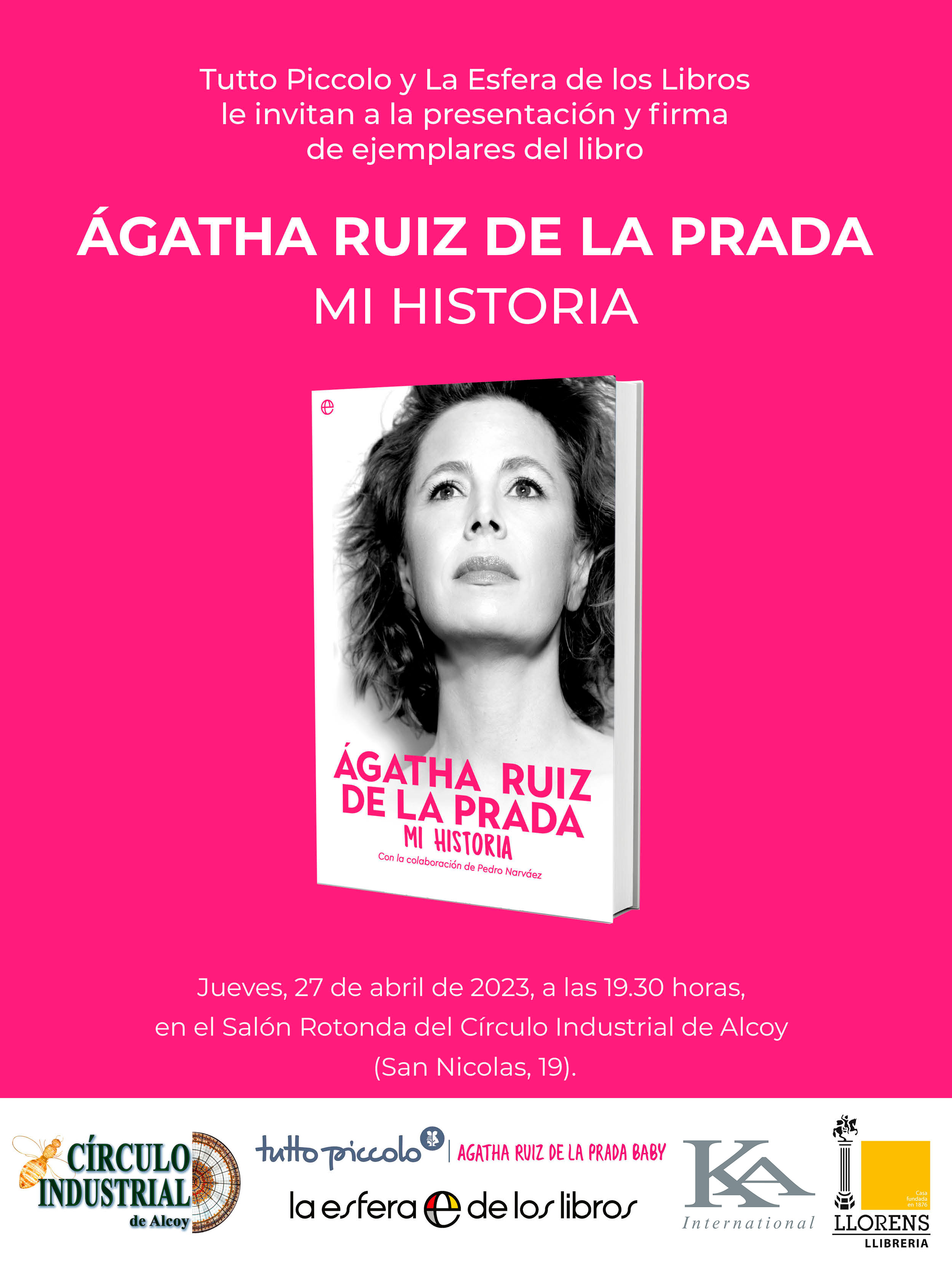 La dissenyadora de moda vindrà a Alcoi per a presentar el seu nou llibre “Agatha Ruiz de la Prada. Mi historia”. L'acte tindrà lloc el 27 d'abril a les 19.30 hores en el Círculo Industrial i en ell, la il·lustradora alcoiana Beca Jover tindrà l'honor d'entrevistar a Ágatha.