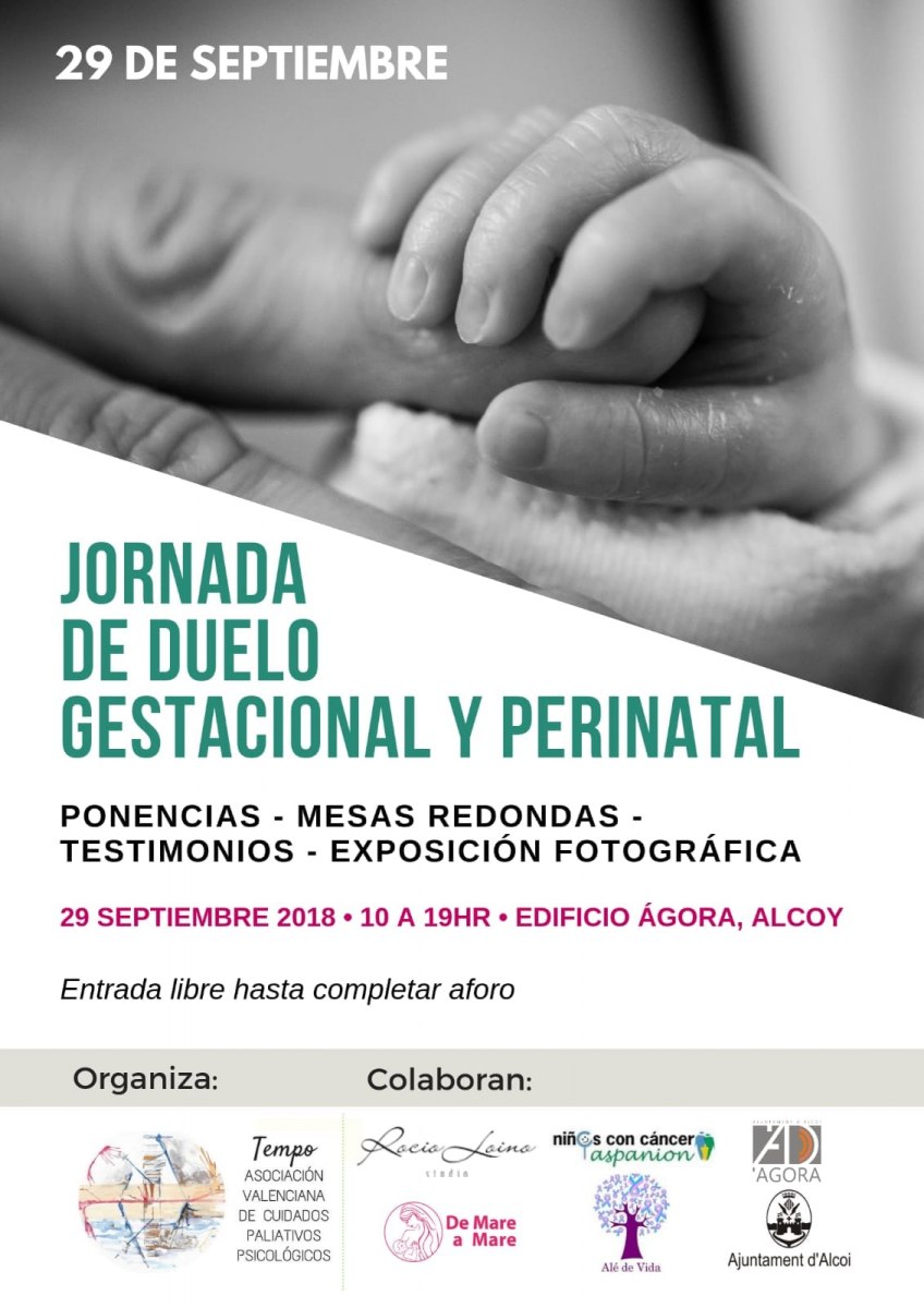 Aquesta primera Jornada de dol gestacional i perinatal que acull Alcoi tindrà lloc a l'Àgora entre les 10 i les 19 h. Tempo, l'associació Valeciana de cuidats paliatius, és la impulsora de la iniciativa, per a la qual compta amb el suport de l'àrea de Benestar Social de l'Ajuntament d'Alcoi i de l'associació de Mare a Mare, entre altres.