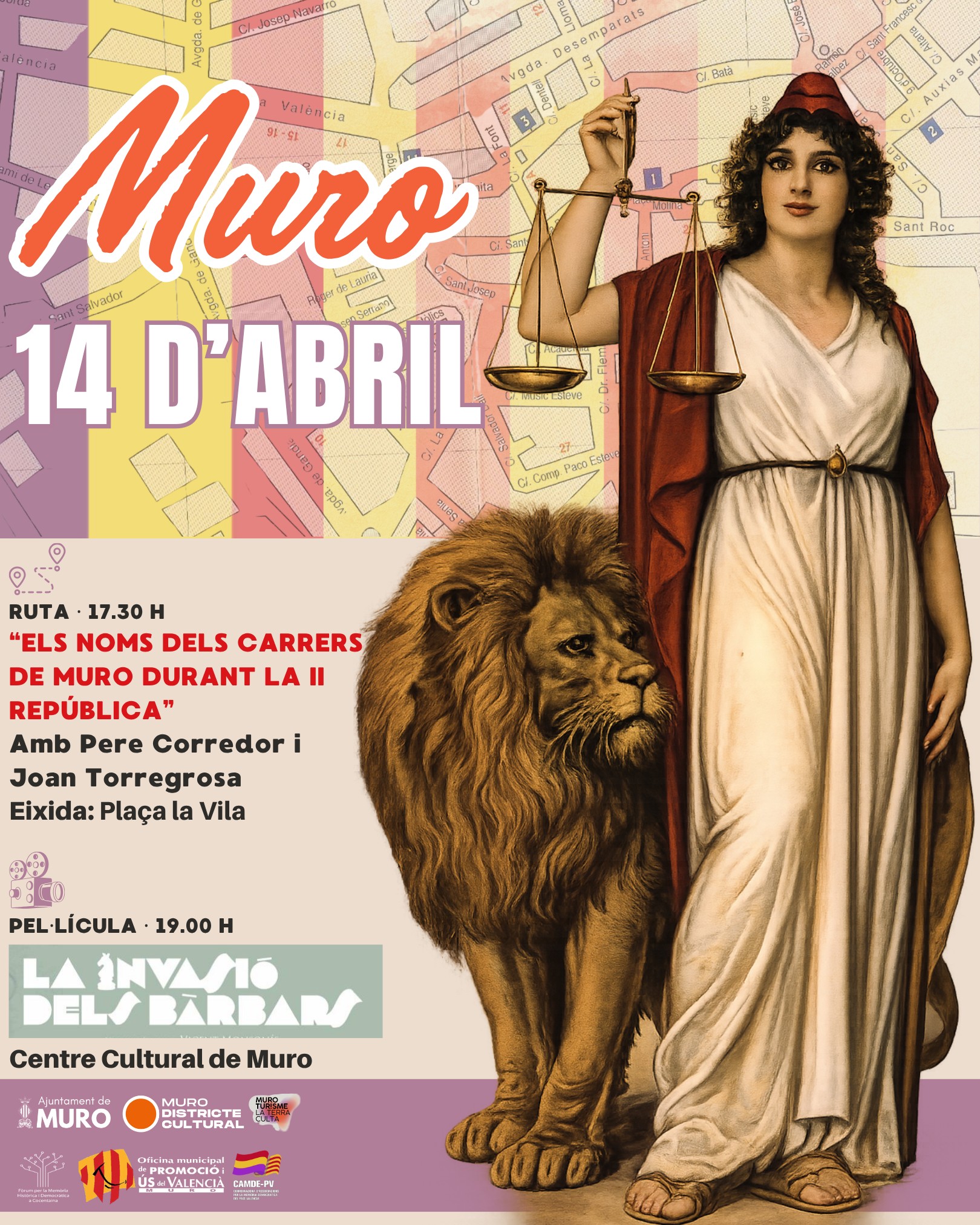 La commemoració continuarà el 14 d’abril a Muro, amb una jornada centrada en la memòria democràtica. A les 17:30 hores s’iniciarà una ruta històrica que ens parlarà dels noms dels antics carrers de la Republicà, guiada per especialistes, amb eixida des de la Plaça de la Vila. Posteriorment, a les 19:00 hores, el Centre Cultural de Muro acollirà l’estrena de la pel·lícula “La invasió dels bàrbars”, una producció valenciana que es presenta com un manifest en defensa de la llibertat i la cultura, amb la memòria històrica com a eix central. L’entrada serà lliure fins a completar aforament.