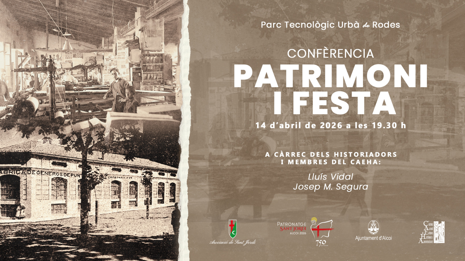 El pròxim 14 d’abril es presentarà a Rodes a les 19:30 la nova ruta turística ‘Alcoi, Indústria i Festa’, un projecte que pretén donar a conéixer el vincle entre el passat industrial de la ciutat i les seus de les filaes. La proposta, impulsada per l’Ajuntament d’Alcoi amb la col·laboració de l’Associació de Sant Jordi i el CAEHA, ampliarà l’oferta turística local amb un recorregut que complementa les rutes de patrimoni i modernisme.