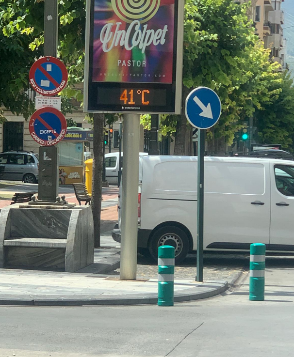 Alcoi ha viscut este dilluns un episodi de calor històric, amb termòmetres que han arribat als 41 °C en alguns punts, una marca que feia anys que no es superava. La situació ha deixat una jornada especialment sufocant. La nit tampoc va donar treva: a la 1 de la matinada els termòmetres encara marcaven 30 °C.