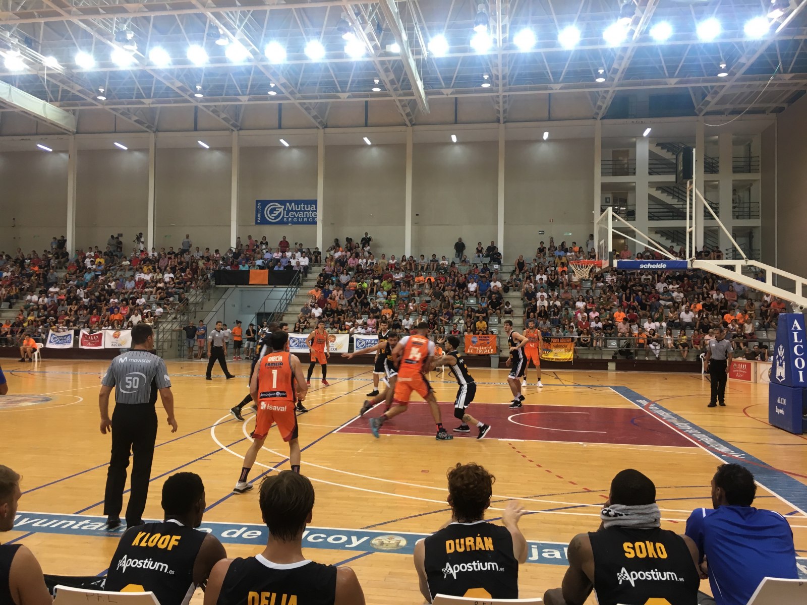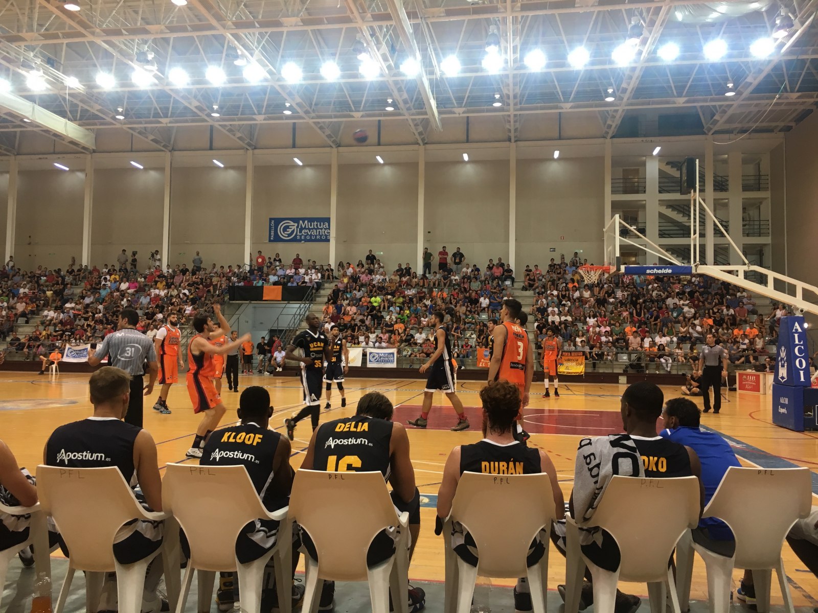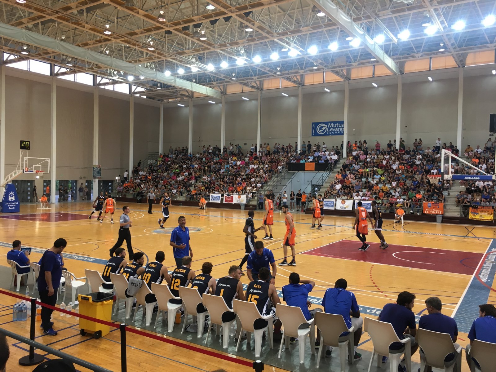 Feia tres anys que el bàsquet del màxim nivell estatal no visitava Alcoi i ja hi havia ganes. Els centenars d'assistents en aquesta calorosa nit d'agost van gaudir amb aquest gran partit de pretemporada d'ACB que va enfrontar al València Basket i a l'UCAM Múrcia (85-58). Les graderies del Mutua Levante es van quedar menudes per acollir aquest xoc, fins i tot les escales del pavelló van quedar ocupades pels assistents.