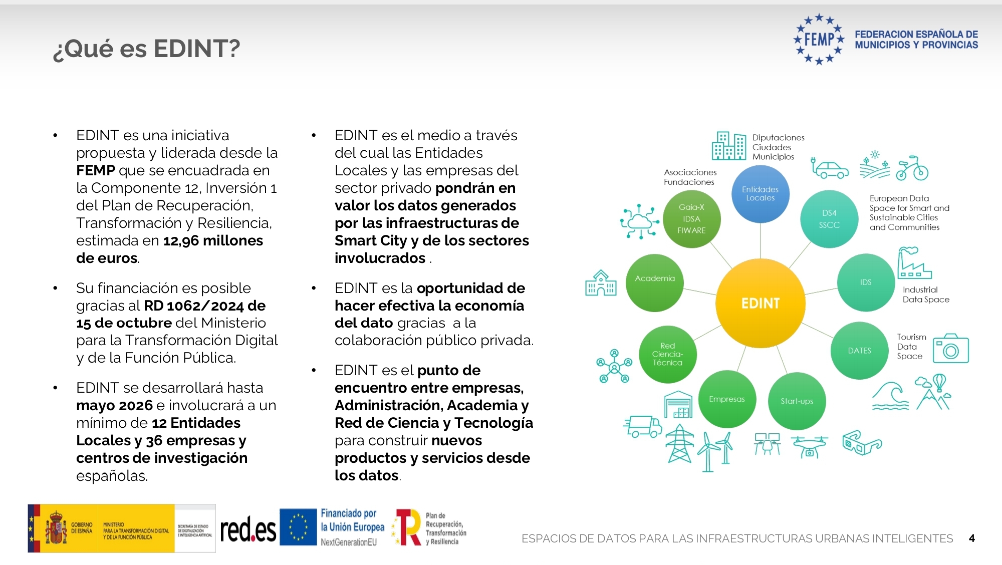 Alcoi ha entrat en el projecte EDINT: Espai de Dades per a Infraestructures Urbanes Intel·ligents. És finançat per fons europeus Next Generation i coordinat a Espanya per la Federació de Municipis i Províncies, la FEMP. El projecte complet compta amb una inversió de quasi 13 milions d'euros a repartir entre les 12 entitats locals que han accedit. Són 12 ajuntaments i 2 diputacions, entre elles per exemple la Diputació de Jaén o la ciutat de Logroño. De la Comunitat Valenciana tan sols han accedit dos: la ciutat de València i Alcoi. I es dona la circumstància que Alcoi és l'única ciutat espanyola de menys de 100.000 habitants en entrar en el projecte.