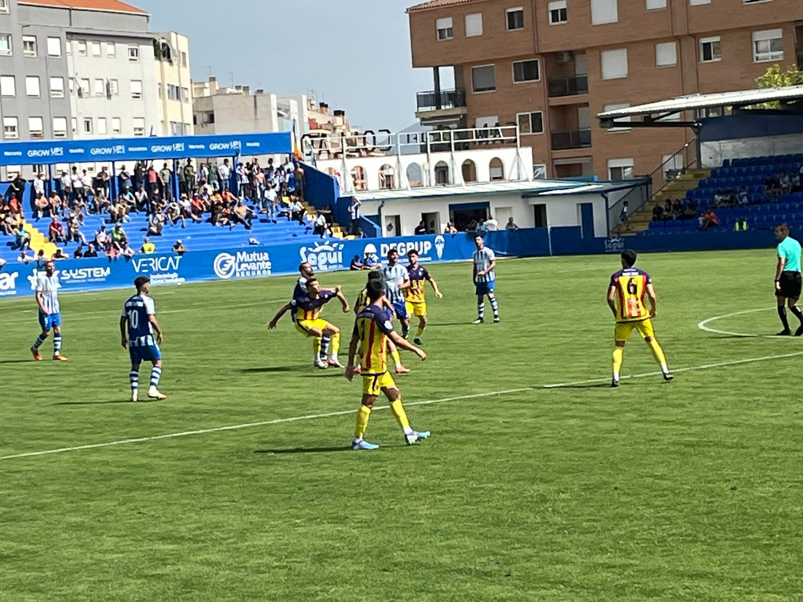L’Andratx, equip intens, corretjós i molt físic, ha vingut a El Collao a per l’empat... i si sonava la flauta en algun contracolp, a per la victòria. Però els ha eixit malament. El seu porter, de cognom poc agradable per als alcoianistes —Ramírez— ha perdut temps descaradament des del minut 1. A la fi, ha vist la groga i ha encaixat l’1 a 0. S’ha complit aquella dita que es pronuncia des de la graderia quan perden temps... «Ja correràs». I, en efecte, ha corregut per a intentar empatar.