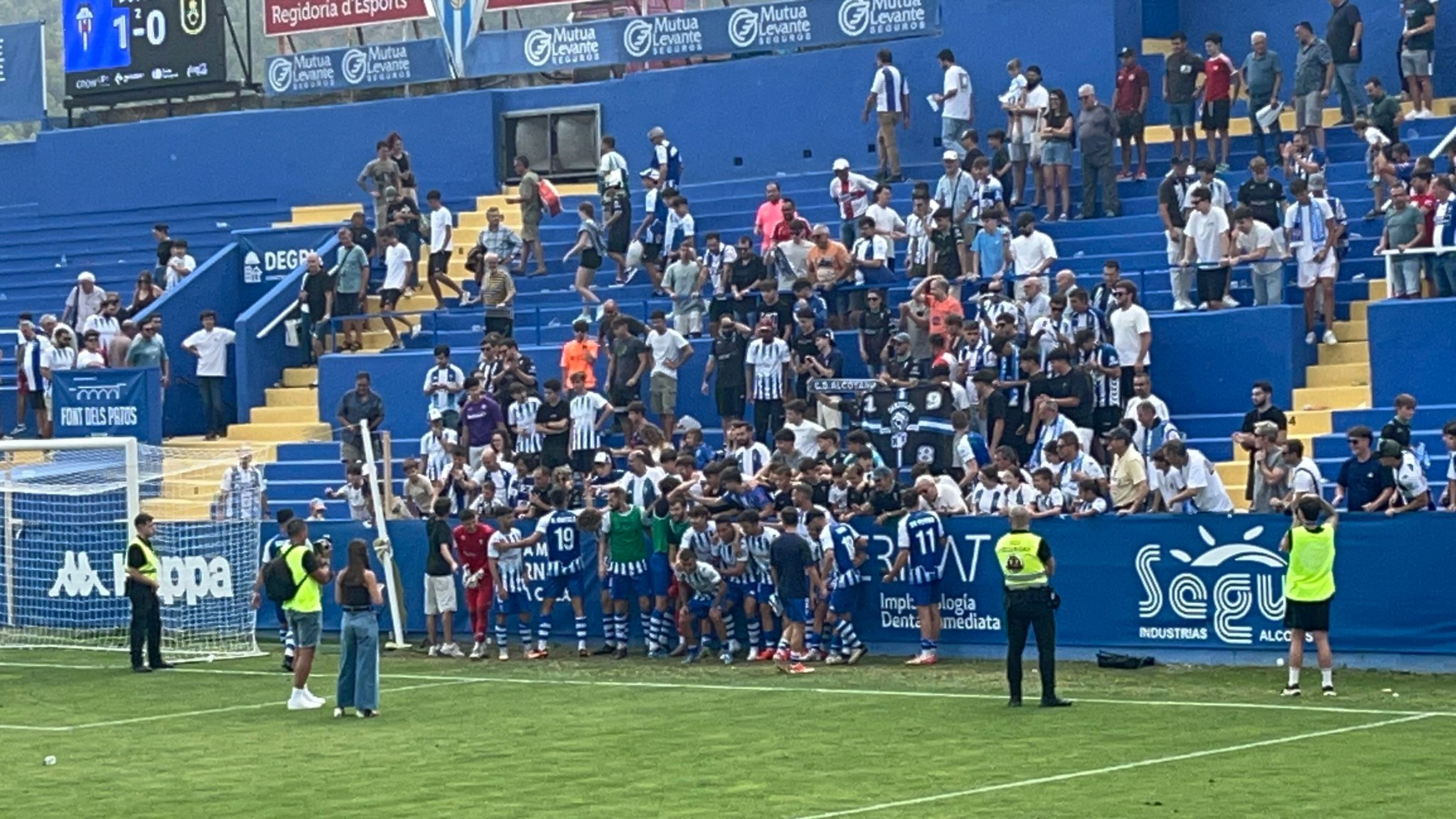 Minut 80. Certa desesperació en l’equip i l’afició, perquè la piloteta no entrava i l’Andratx perdia temps des del minut 1. Lado, un dels homes amb més compromís i espenta de l’equip, l’enganxa i fa l’1 a 0. Quin bon rotllo! Quin final més bonic per a un matí calorós on, tot i celebrar-se la Romeria a la Font Roja, 1.700 alcoianistes han triat El Collao. La passió i la Pau sí que han tornat a casa definitivament. I, de pas, com diu l’entrenador, s’ha trencat la síndrome de la primera victòria. Avant!!