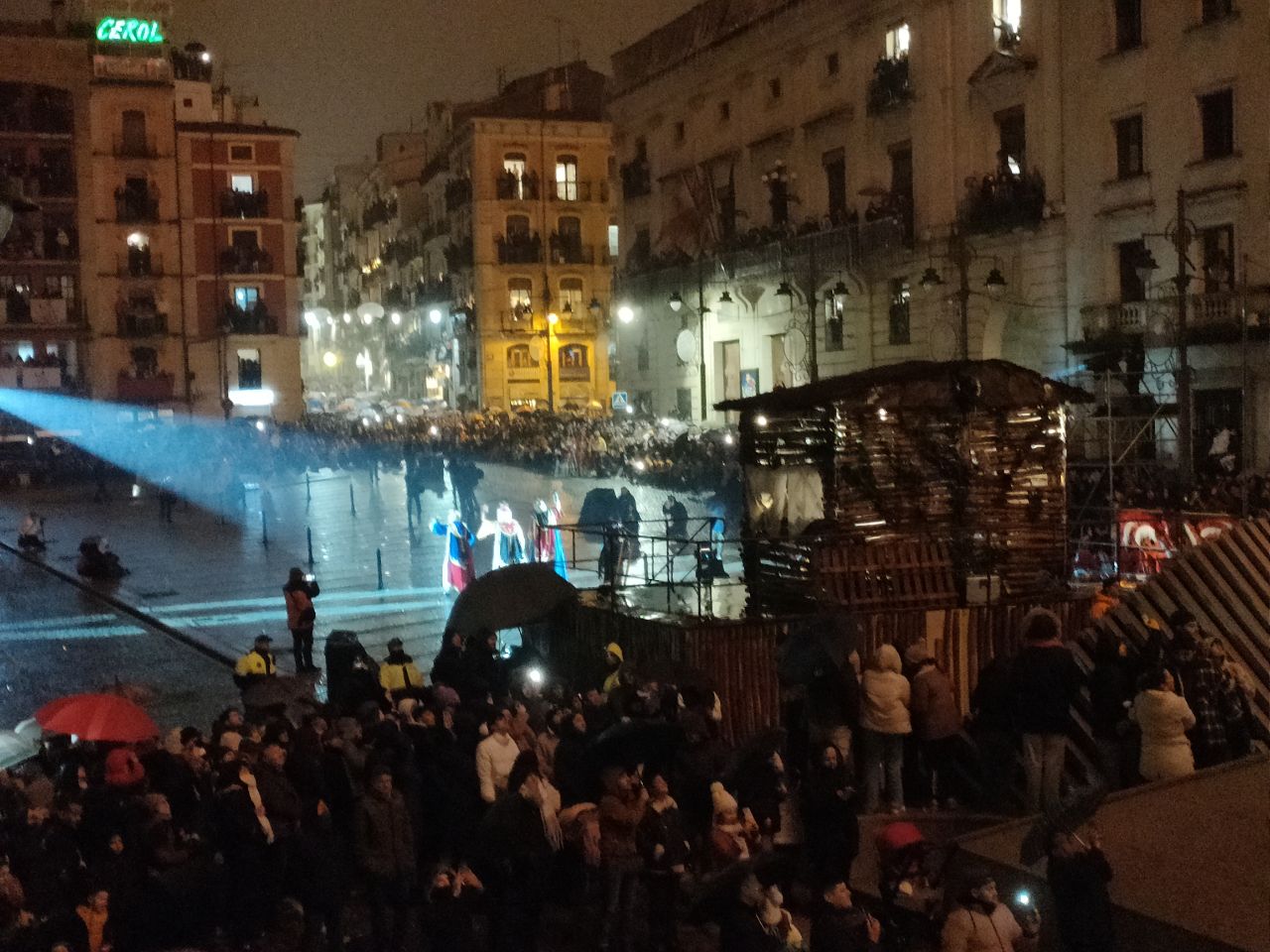 El moment més solemne ha sigut a poqueta nit, abans de les 20 hores, a la plaça d'Espanya. Amb les llums de la ciutat apagades i sota el so de l’Al·leluia de Händel, els tres Reis han baixat dels seus camells per a dirigir-se al Naixement, per concloure tot amb els colors del castell de focs d’artifici.
