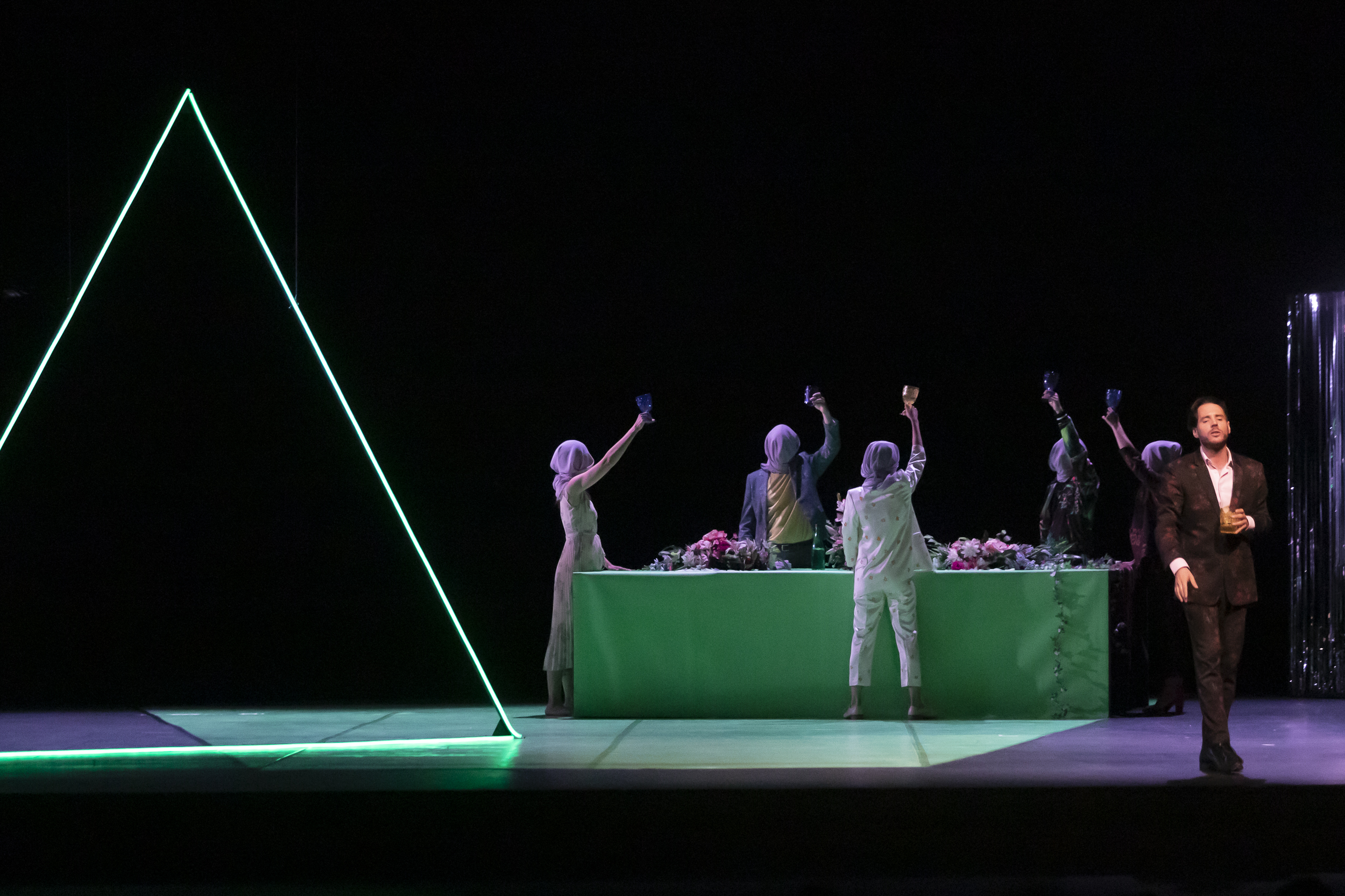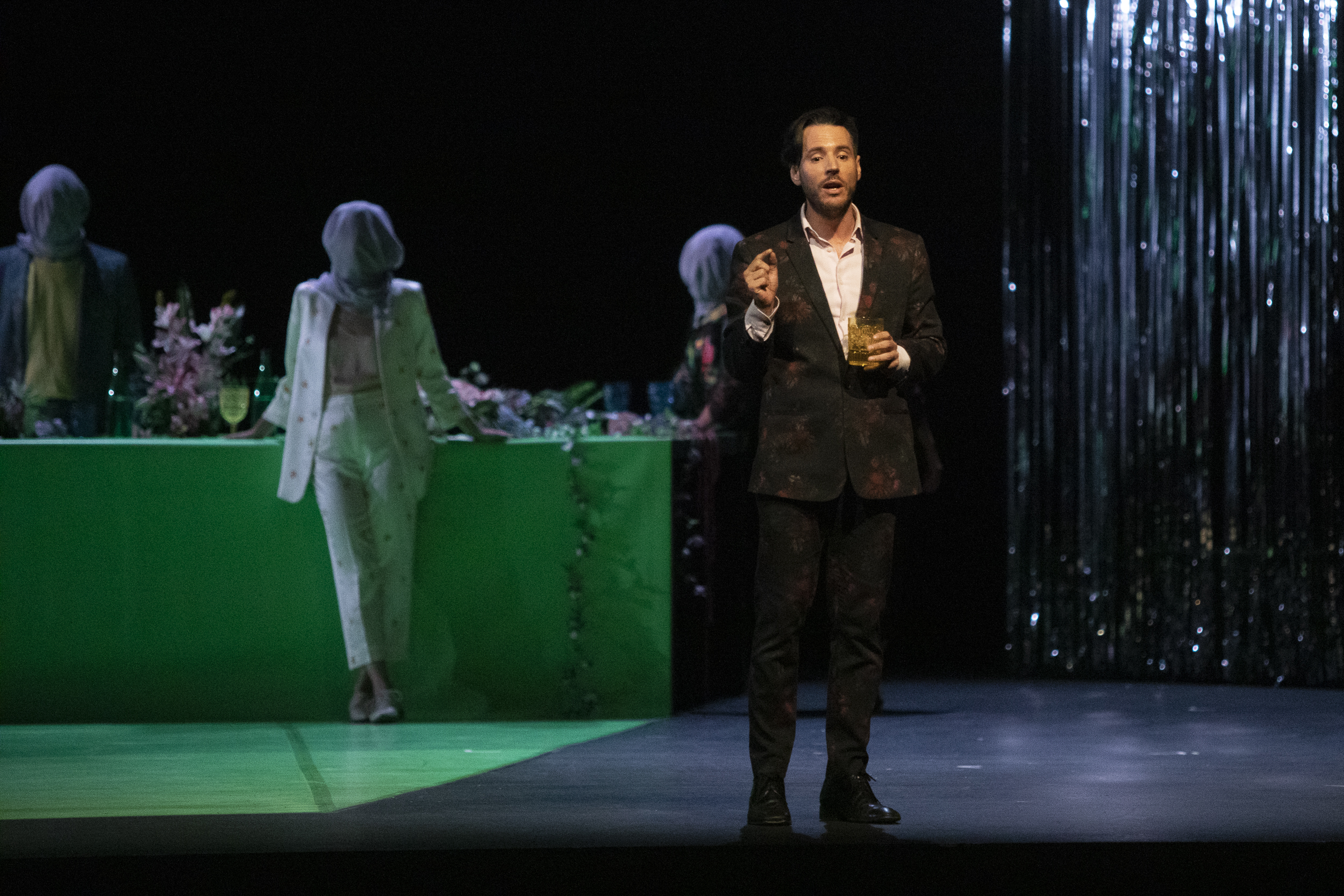 What is love, baby don’t hurt me, la proposta de Víctor Sánchez Rodríguez amb què l’edició 29 de la Mostra de Teatre d’Alcoi va tancar aquest dimarts intens al Calderón, parteix d’un embolic universal: la celebració infinita d’unes noces. Ivanov es casa es casarà amb Alejandra, però la seua anterior dona, Ana, encara està al seu pensament –i a escena. Entre d’altres personatges. Però, què és l’amor? És ‘deixar de ser’ per tal de colonitzar l’altre? El debat es serveix a escena a mode de poliamor irreverent: una discoteca per on passen la música disco tecno, la cocaïna, les insinuacions sexuals, en torn a un guió i un paper protagonista un tant espès, que no acaba de creure’s l’espectador, i uns rostres una mica desencaixats en el seu intent de sobreviure als drames del segle XXI. La incursió de la jove vídua, Bárbara, imprimeix al relat el dinamisme necessari que, no obstant, transita perillosament entre un intent excesiu d’aprofundir en la reflexió per part de l’observador i alguns tòpics de nit que acaronen la comèdia. El simulacre de concert de música en directe ajuda a endinsar-se en l’univers que Wichita Co i A+ soluciones culturales van representar la nit de dimarts al context de la Mostra.