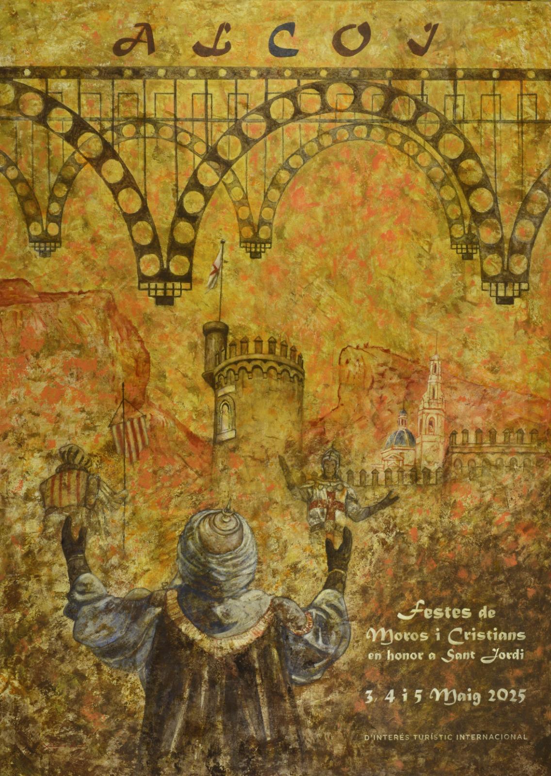 Ja llueix en la plaça el cartell que anuncia els Moros i Cristians d'este 2025. Encara haurem d'esperar un mes per a la trilogia, però abril ja està carregat de Festa.