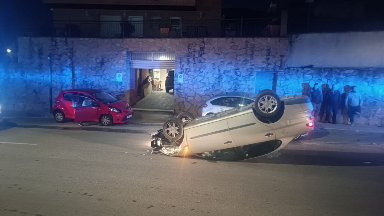Segons ha pogut saber Aramultimèdia, el conductor anava cap al polígon a iniciar la jornada de treball quan ha perdut el control del vehicle, i s'ha estavellat contra altres dos cotxes aparcats fins a quedar bolcat com es veu en la foto.