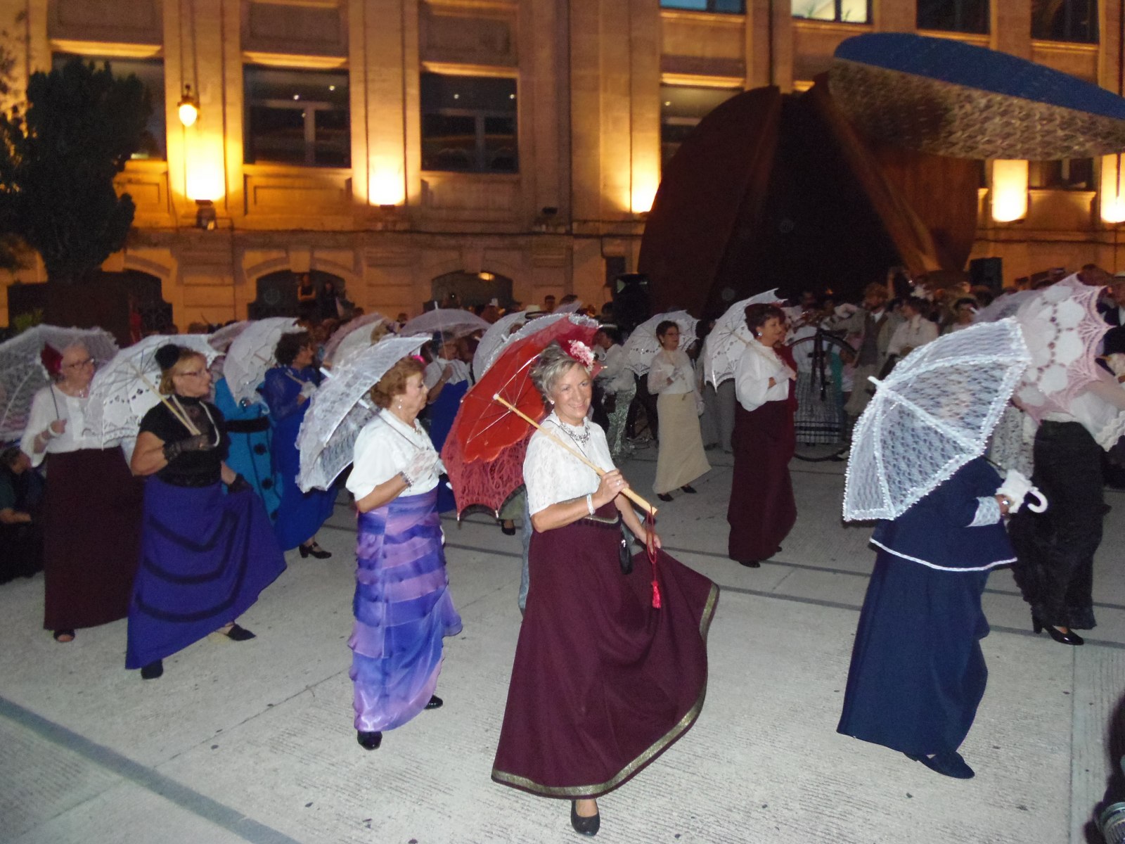 Tot seguit la comitiva s'ha desplaçat fins a la Plaça Ferrándiz i Carbonell, acompanyats per la música de la banda del Campus d'Alcoi de la UPV. Una vegada que la cercavila ha arribat a la seua destinació, els integrants de les Aules de Tercera Edat, secció de ball, han mostrat els balls populars de l'època que han preparat durant els últims mesos.