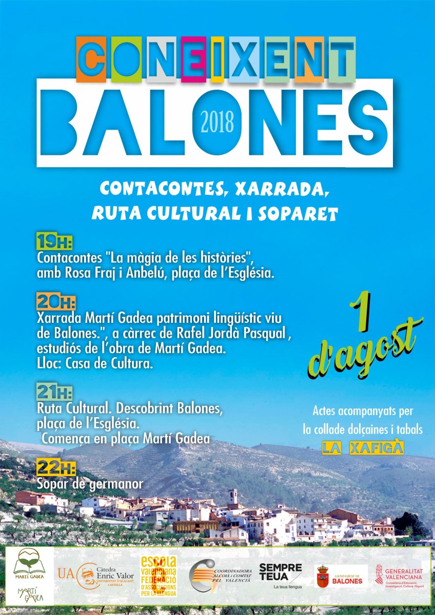 Aquestes activitats estan organitzades pels "Amics de Martí Gadea", per l'Ajuntament de Balones i per la Coordinadora pel Valencià per a fomentar i divulgar el patrimoni local