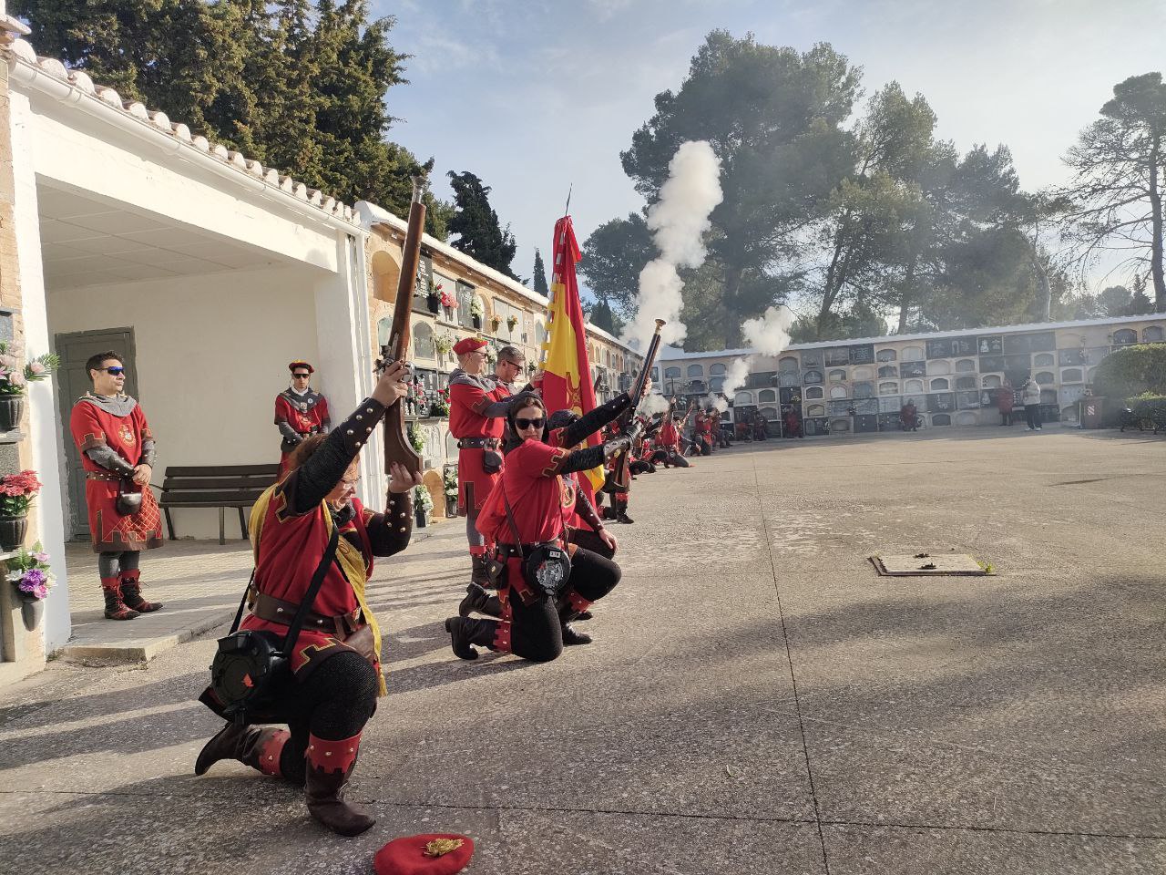 Tot comença de bon matí a la finca El Morer on els capitans passen la bandera als càrrecs de l'any pròxim. Des d'ací, desfilen disparant fins a l'ermita de Sant Jordi i al cementeri. Cada filà entra per una porta i llança tres salves, per a després anar a la part baixa del cementeri i disparar-ne altres tres, i acaben amb una missa de difunts.