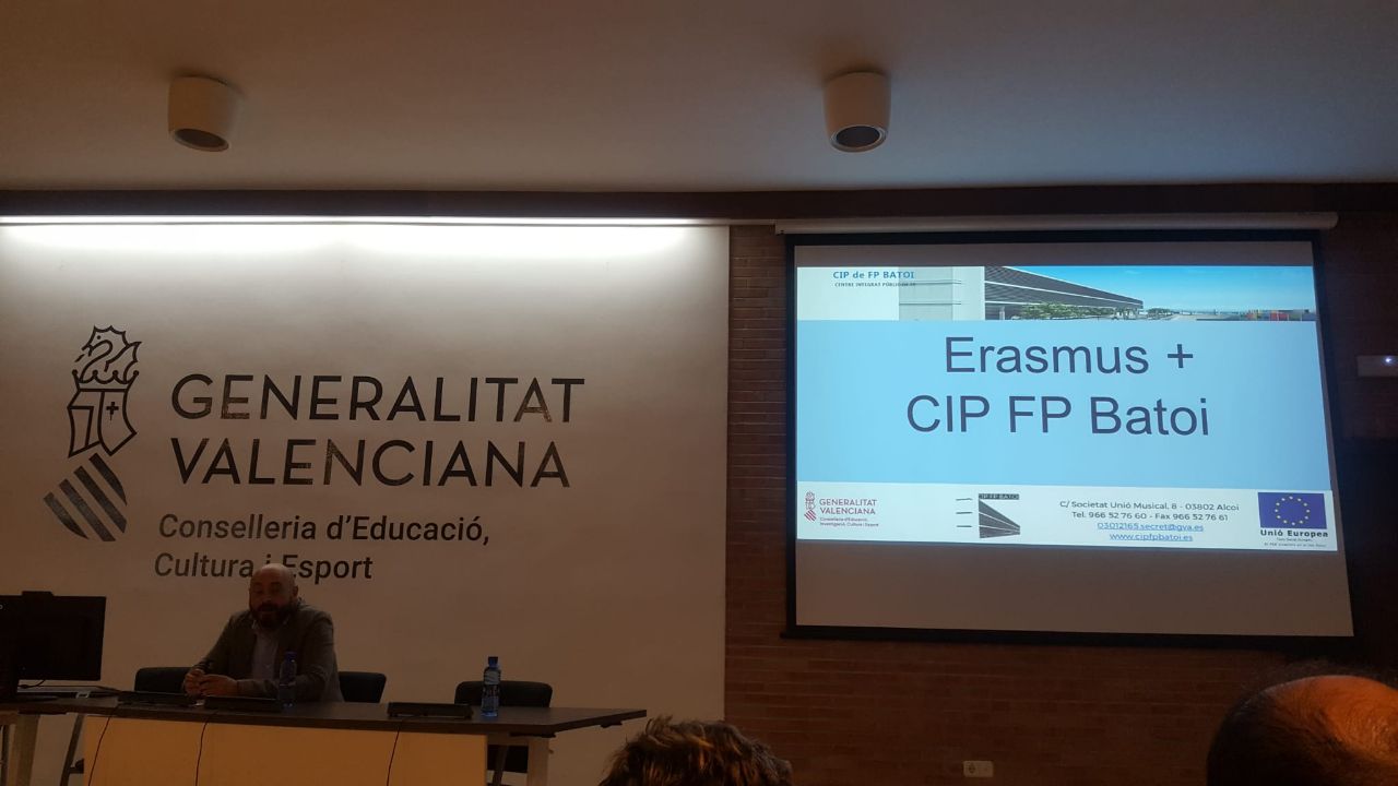 La conselleria d'educació ha acollit les Jornades Erasmus 2020, per tal d'avançar als centres escolars les novetats i projectes per al pròxim curs escolar. Els assistents també han pogut escoltar les experiències de centres capdavanters, com és el cas del CIP FP Batoi, el centre valencià que més alumnes destina a viatges Erasmus. El vicedirector del CIP FP Batoi, José Maria Guarinos, ha participat en una taula d'intercanvi d'experiències, on ha exposat la forma de treballat al centre alcoià.