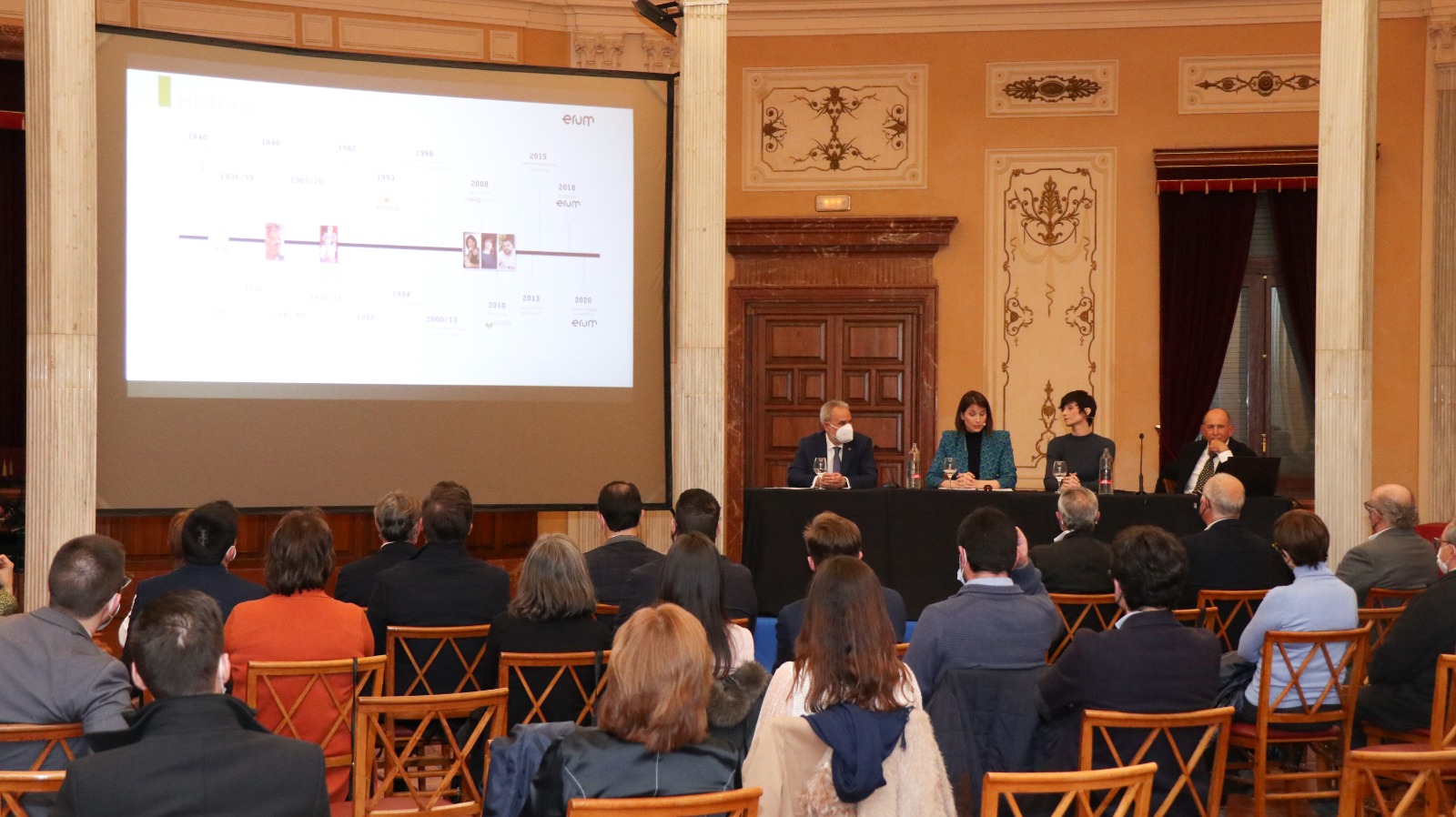 Més de 70 persones han acudit al Círculo industrial per tal de conèixer de primera mà un cas d’èxit d’Internacionalització. Erum té una “evolució constant” des de fa 85 anys. Han aportat un punt de vista diferent, ja que Erum està present en més de 25 països dels 5 continents. Com a curiositat, al finalitzar la conferència alguns estudiants van preguntar a Blanca i Coral Erum per la possibilitat de fer pràctiques en la seua empresa.
