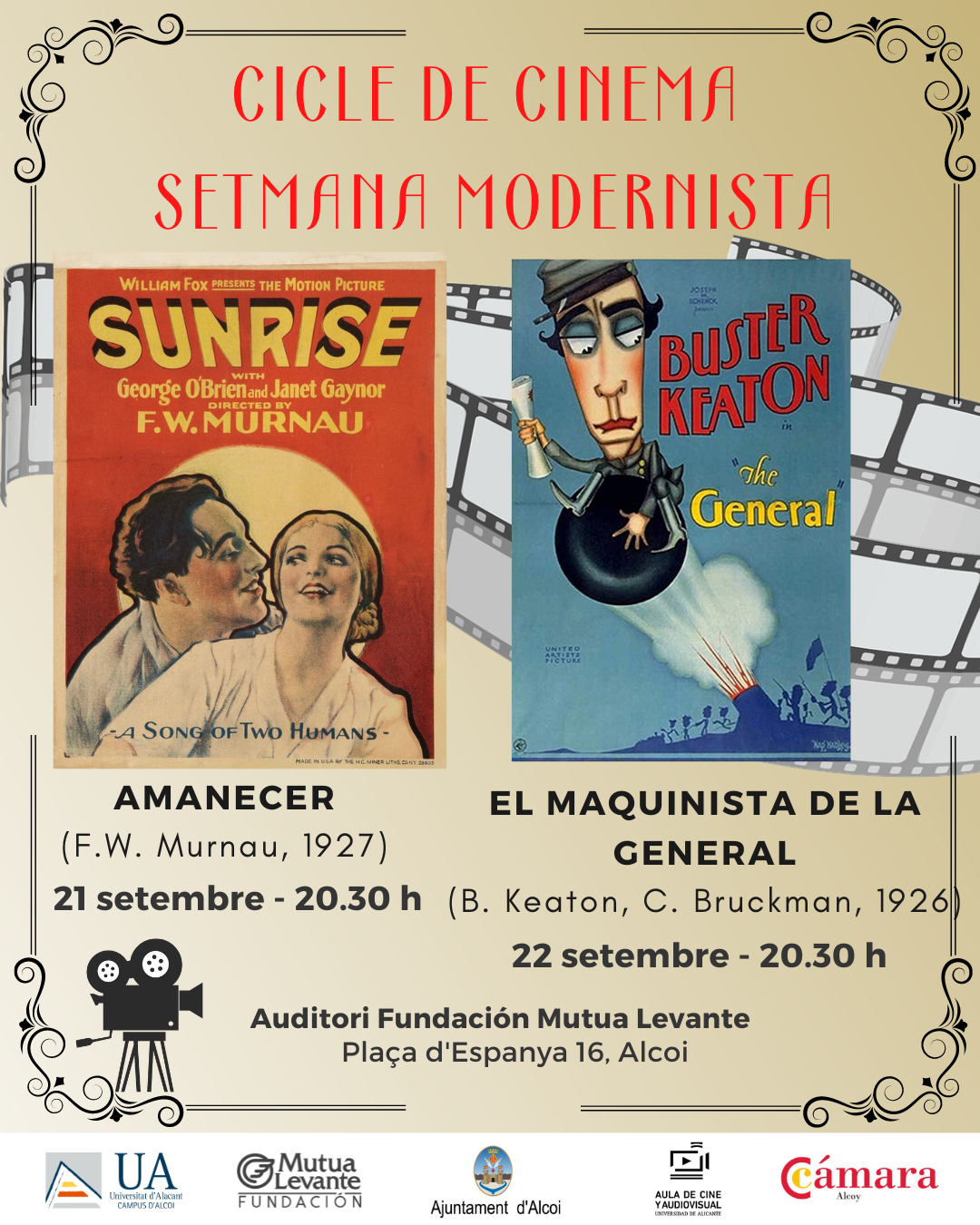 La Fundació Mutua de Levante acollirà les dos projeccions durant la Setmana Modernista: 'Amanecer' el 21 de setembre, i 'El maquinista de la General' el 22 de setembre.