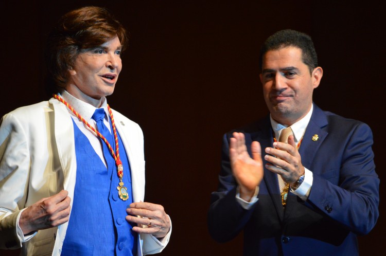 Un emocionat Camilo Sesto ha estat condecorat amb la medalla d'or de la ciutat i el títol de fill predilecte davant d'un Teatre Calderón ple de gom a gom i amb el senyal de televisió retransmetent per a tot el món via Internet, i també a milers d'alcoians que des de la plaça de Dins han pogut gaudir -a mitges per això que no hi havien entrades per a tots al teatre- l'espectacle.