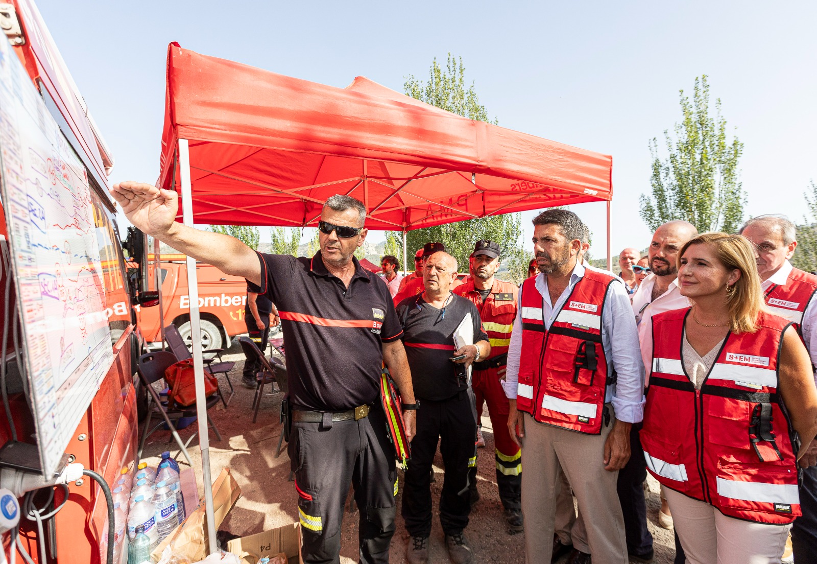 El cap del Consell ha visitat el Lloc de Comandament Avançat on ha mantingut una reunió amb els efectius després de la qual ha assenyalat que “les hectàrees estabilitzades en este moment són 270” i que “anem pel camí de la seua perimetració i del seu control definitiu”.