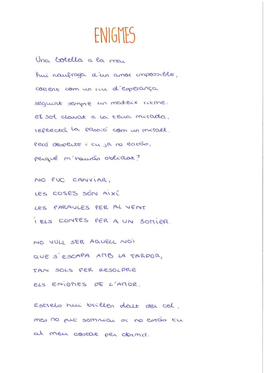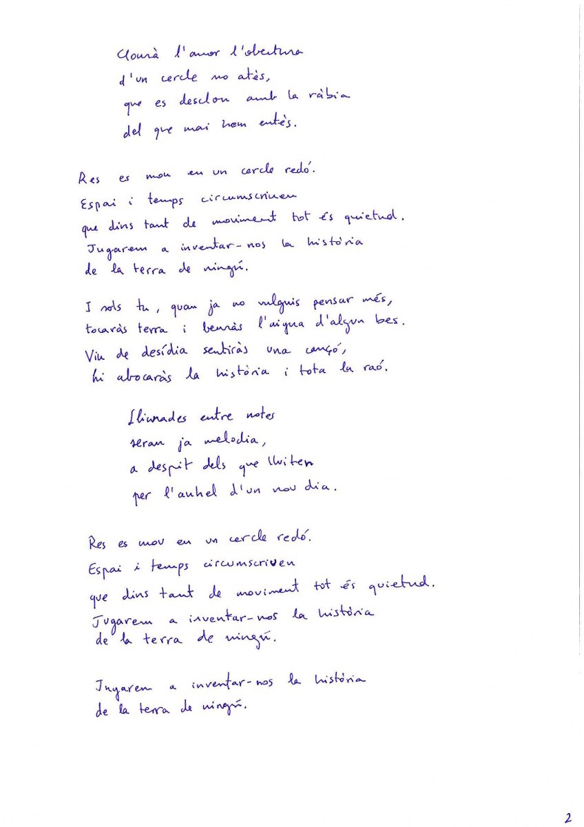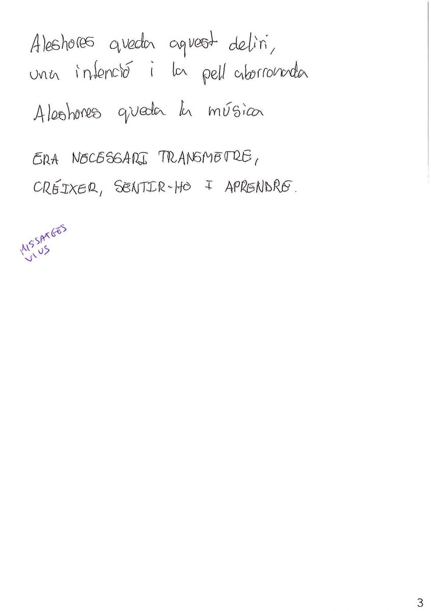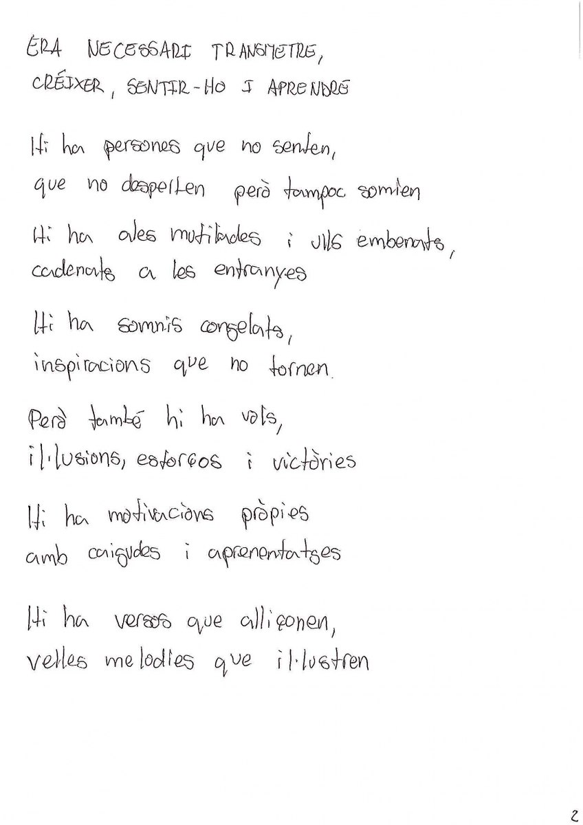 En segon lloc ha quedat la lletra d'Andreu Barceló, 'Missatges vius', amb un premi de 150 euros.