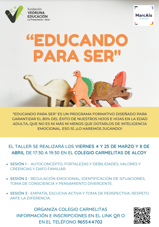 El col·legi Carmelites Vedruna ha preparat uns tallers dirigits als pares i mares de xiquets/as de 0 a 5 anys. Els tallers estan oberts a tothom, són gratuïts i existirà un servei de guarderia per a aquelles famílies que vinguen acompanyades dels seus fills/as.