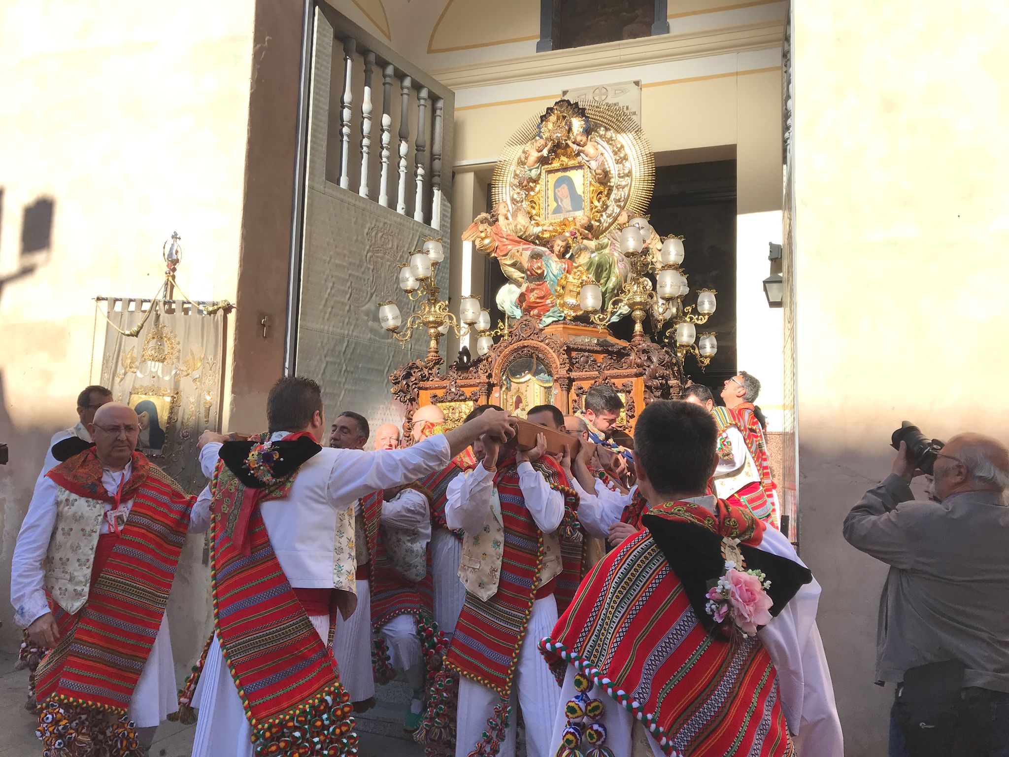 El quadre de la Mareta ha eixit del convent de les clarisses acompanyada pels coloms llançats per a l'ocasió, l'himne d'Espanya i un cor de persones d'edat avançada que cantaven la glòria, encara jove i forta, de la seua patrona.