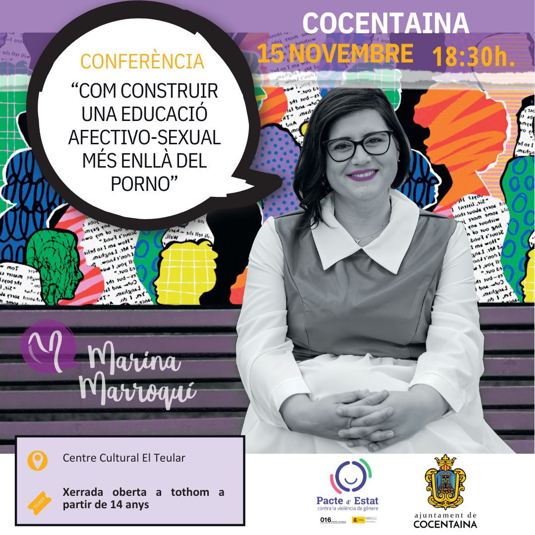 Un any més, Cocentaina ha presentat la programació amb motiu del 25N, Dia Internacional per l’Eliminació de la Violència contra les Dones. Els actes previs s’han iniciat aquest 15 de novembre a les 11:30h amb un monòleg impartit per Marina Marroquí, educadora social i especialista en violència de gènere, qui ha impartit tallers i formació a més de 200.000 adolescents, així com a professionals de l’àmbit policial, sanitari o jurídic.