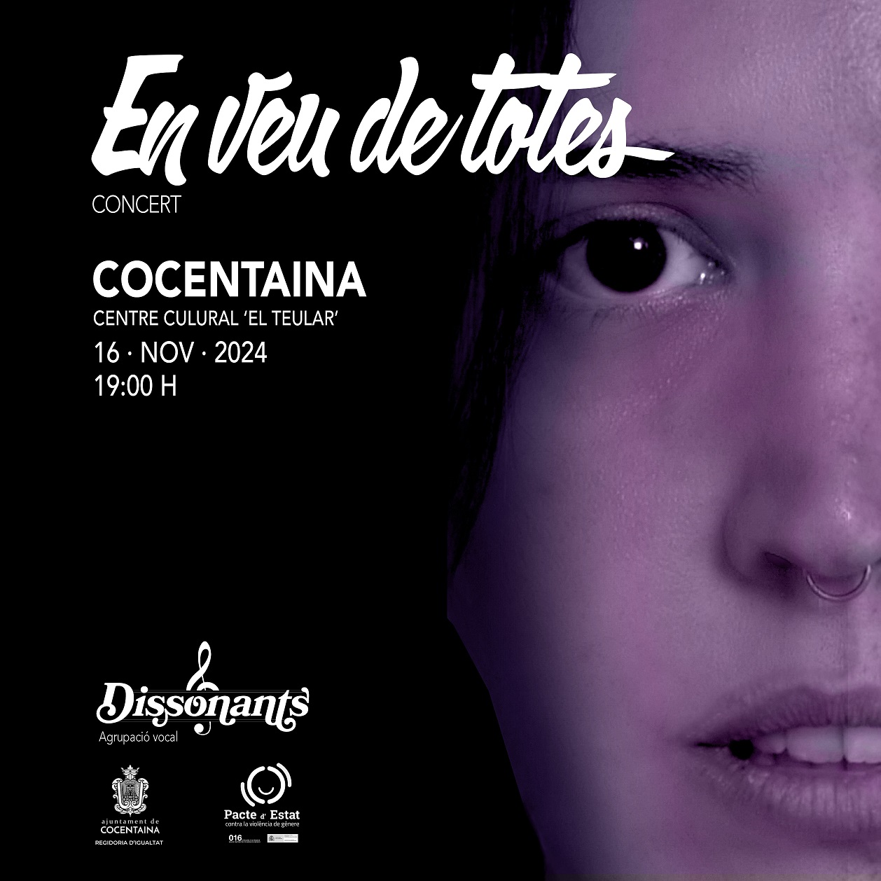 El 16 de novembre se celebra el concert ‘En veu de totes’ a càrrec de l’agrupació vocal Dissonants, de nou en el Centre Cultural El Teular, a les 19:00 hores.