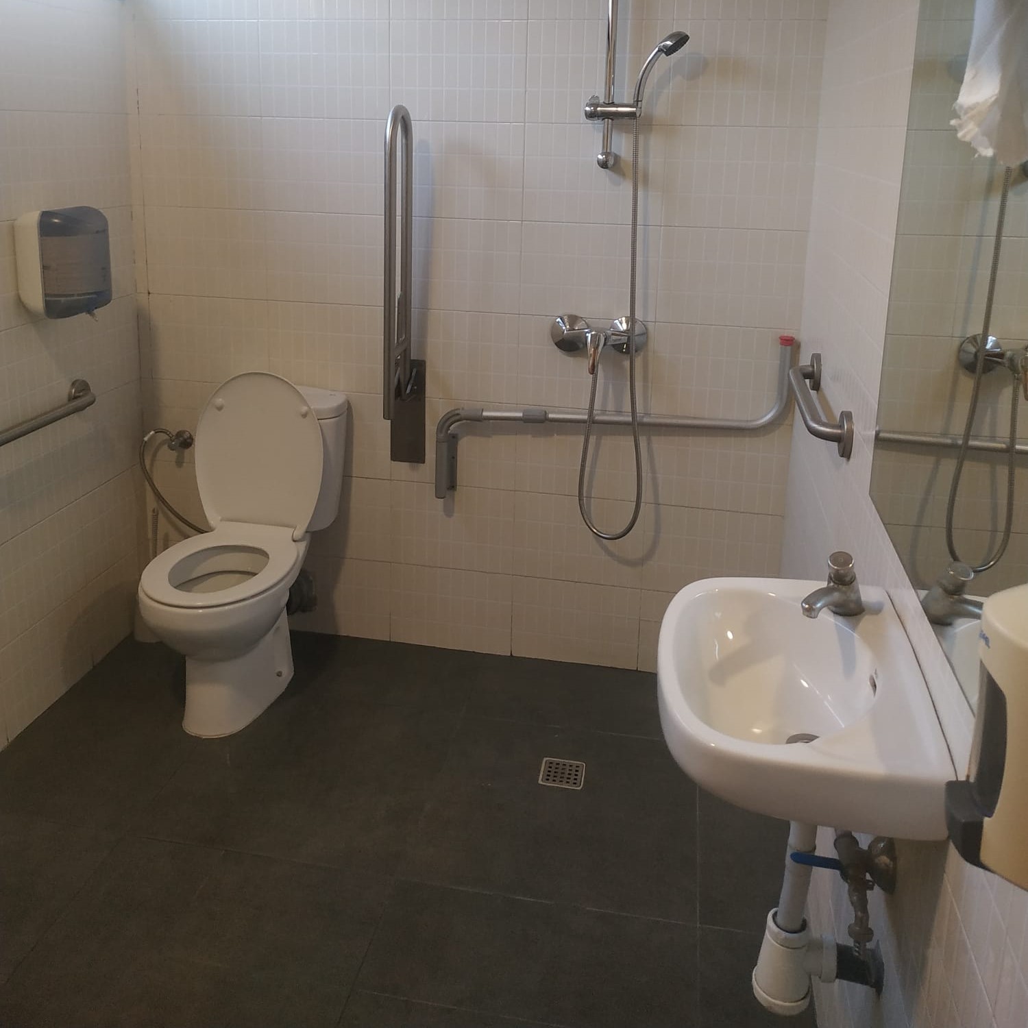Concretament s'ha canviat el paviment del bany per tal de millorar l'accessibilitat a les persones que van amb cadira de rodes.