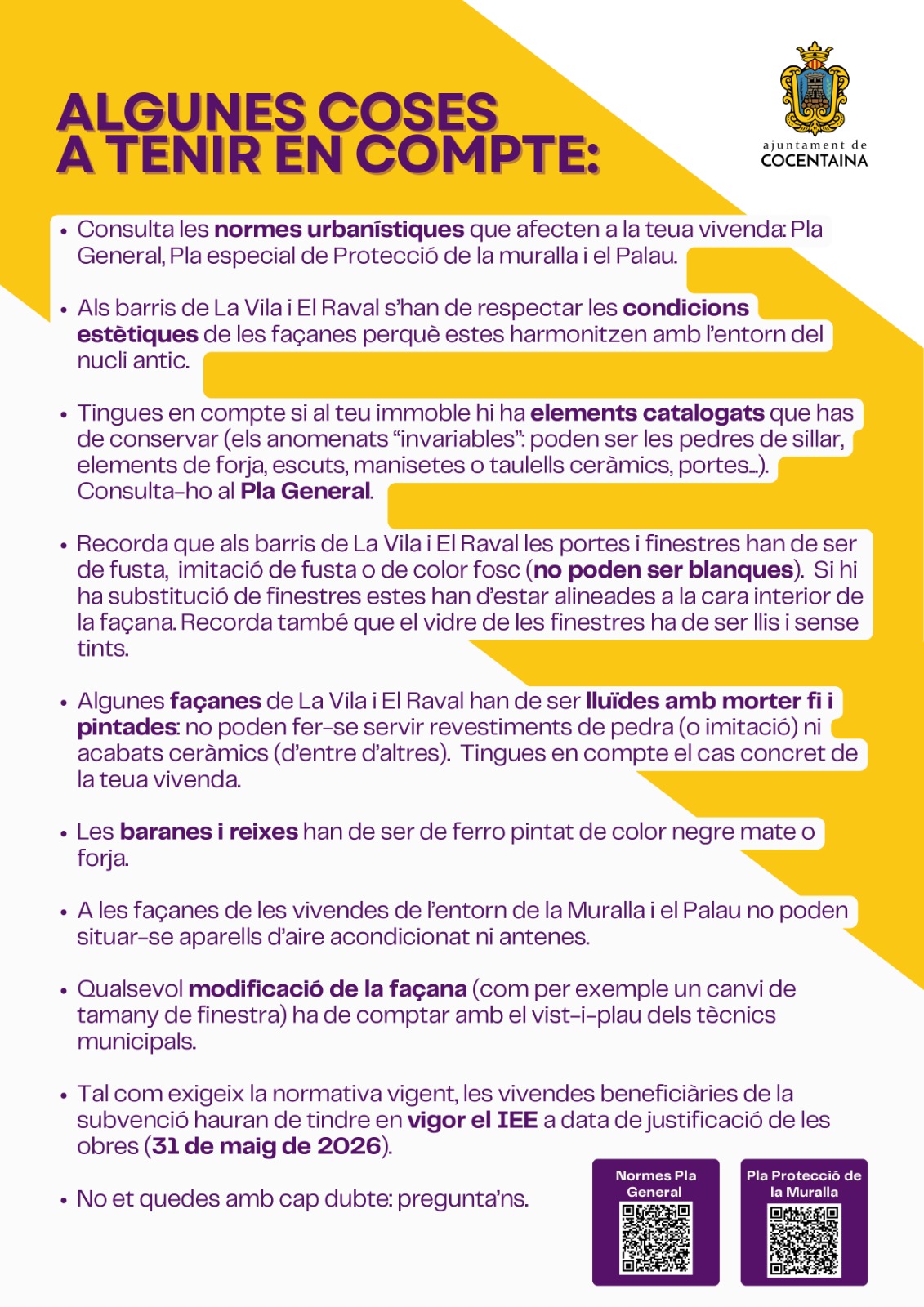 L’Ajuntament de Cocentaina ha llançat una nova convocatòria d’ajudes per a la rehabilitació de façanes i tancaments.