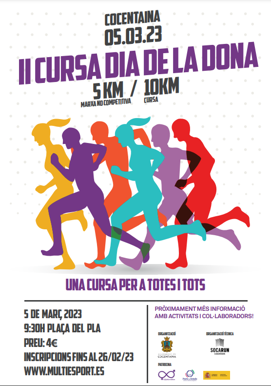 El pròxim 5 de març Cocentaina celebrarà la segona edició de la Cursa de la Dona, una activitat més que s’integra en la programació amb motiu del 8 de març, Dia Internacional de la Dona.