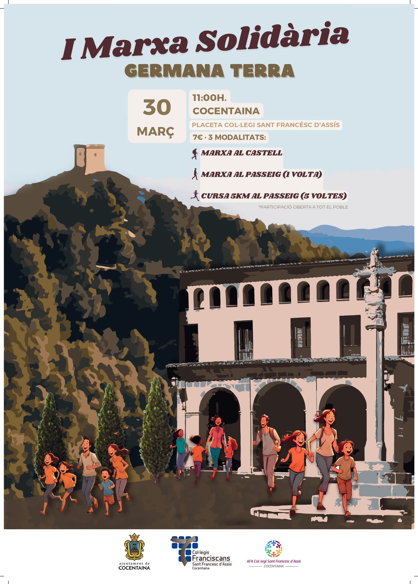 Cocentaina presenta la primera Marxa Solidària-Germana Terra, organitzada pel col·legi Sant Francesc d'Assís, amb els pares franciscans, l'AFA del Convent i l'Ajuntament.