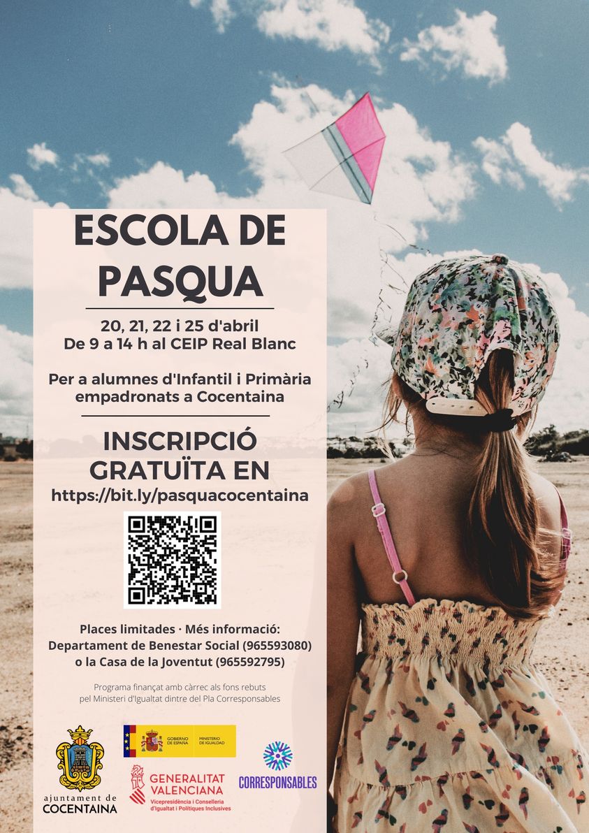 Amb l’objectiu d’ajudar en este sentit, Les regidories d’Educació, Benestar Social i Joventut posen en marxa la primera escola de Pasqua totalment gratuïta que tindrà lloc el 20, 21, 22 i 25 d’abril a les instal·lacions del CEIP Real Blanc.