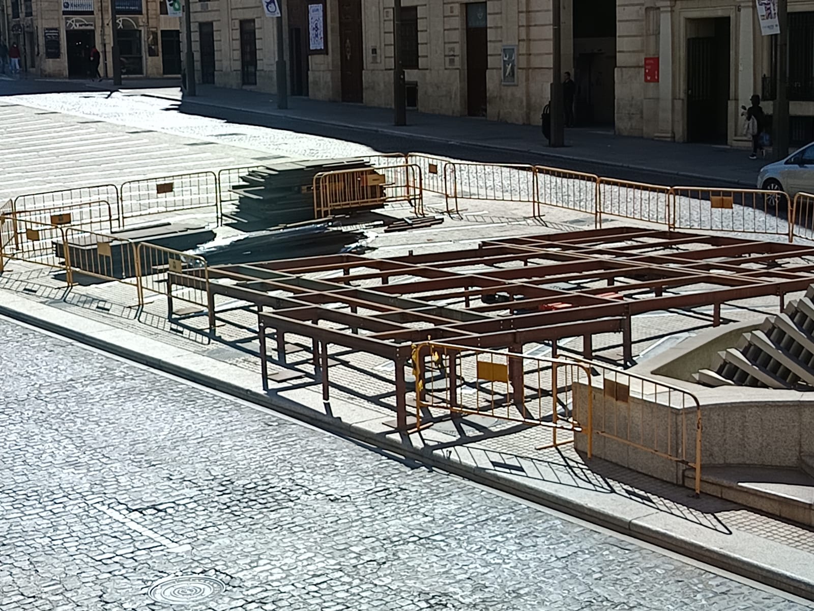 Este 5 de març s'ha iniciat a la plaça d'Espanya el muntatge del Castell de Festes d'Alcoi. Tenim la foto, però és molt més significatiu el meme que ja corre per la ciutat: