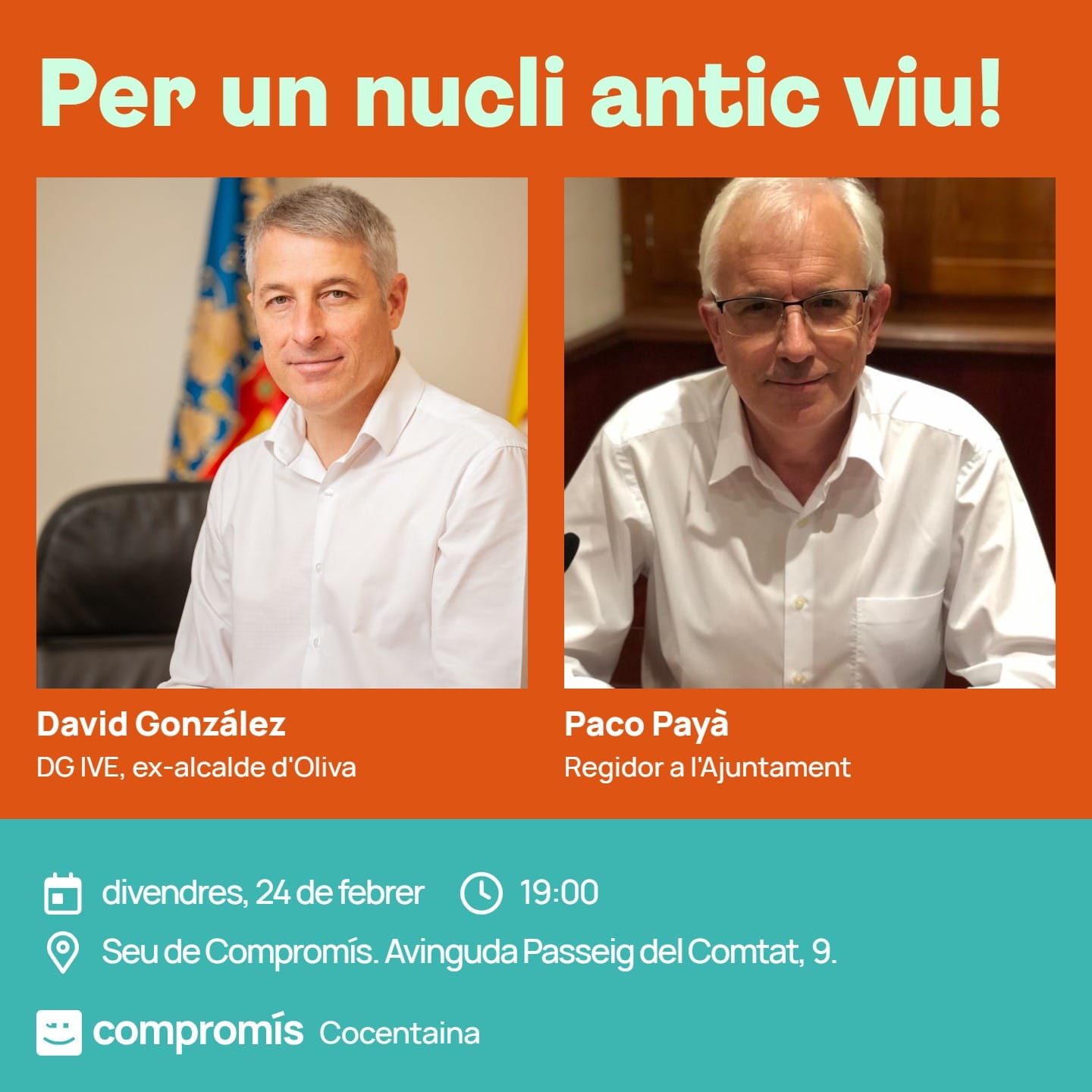 L’acte comptarà amb la presència del regidor de Compromís a l’Ajuntament, Paco Payà, i de l’exalcalde d’Oliva David Gonzàlez.