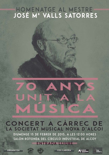 La societat musical Nova d'Alcoi i el Cercle Industrial fan este diumenge 15 de febrer un homenatge musical al compositor alcoià José María Valls Satorre, qui enguany complirà 70 anys. Un concert especial i gratuït en el que podran sentir-se marxes com ara Al-basora, Pas als Flamencos, o el poema simfònic per a banda Al-Azraq. I s'estrenarà la marxa Almería, músic i fester, dedicada al percussionista José Luis Almería Pintado.