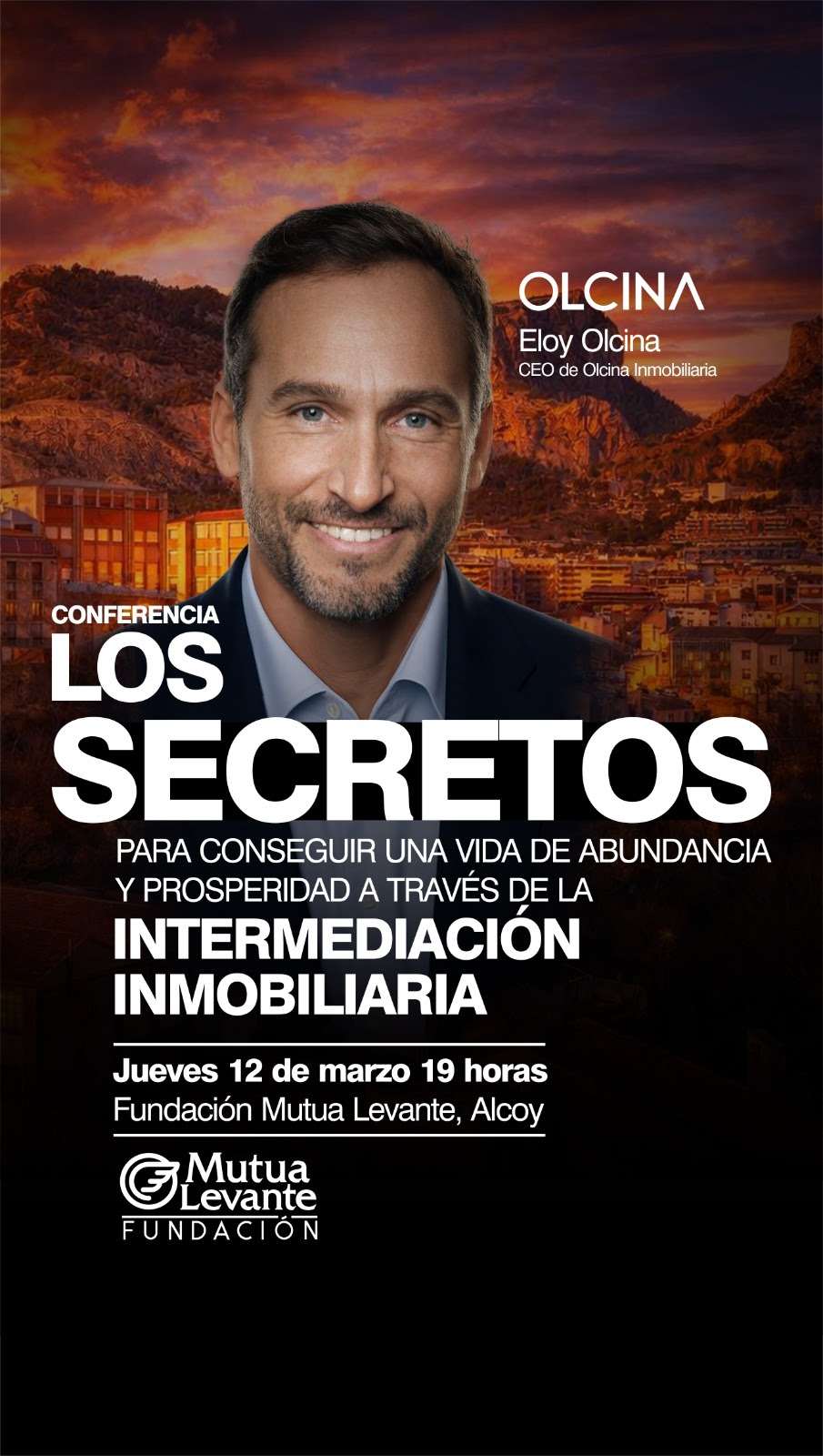 L’Auditori de la Fundación Mutua Levante acull aquest dijous 12 de març, a les 19.00h, la conferència titulada “Los secretos para conseguir una vida de abundancia y prosperidad a través de la Intermediación Inmobiliaria”, impartida per Eloy Olcina (CEO de Olcina Inmobiliaria).