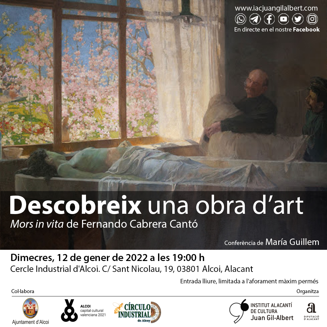 L'Institut Alacantí de Cultura Juan Gil-Albert comença l'any a Alcoi amb una conferència dedicada a l'artista Fernando Cabrera Cantó i al seu quadre ‘Mors in vita’. La historiadora d'art María Guillem imparteix hui 12 de gener esta xerrada, que s'emmarca en el cicle ‘Descobreix una obra d'art’.
