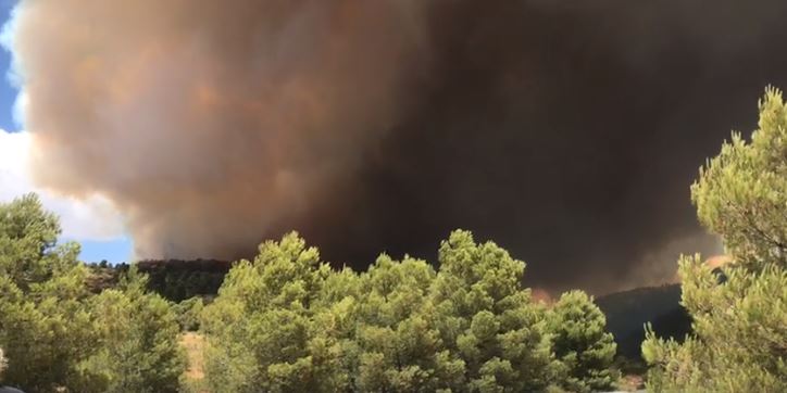 Fins a 8 mitjans aeris treballen en l'extinció. La columna de fum es veu a L'Alcoià i El Comtat. De fet a Alcoi es veu un cel amb tons marrons o taronja. Un dels avions recarrega aigua al pantà de Beniarrés. El foc s'ha originat a les 14:05 hores i el 112 ja ha rebut 177 telefonades. Segons AEMET, a la zona de l'incendi hi ha més de 35 graus i una humetat relativa menor del 30%.
