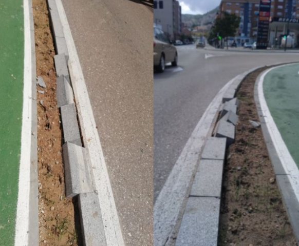 L'edil assegura haver "observat que els blocs de ciment que conformen la vorera manquen de morter, a més de tenir els cantons afilats per no haver estat degudament bisellats".