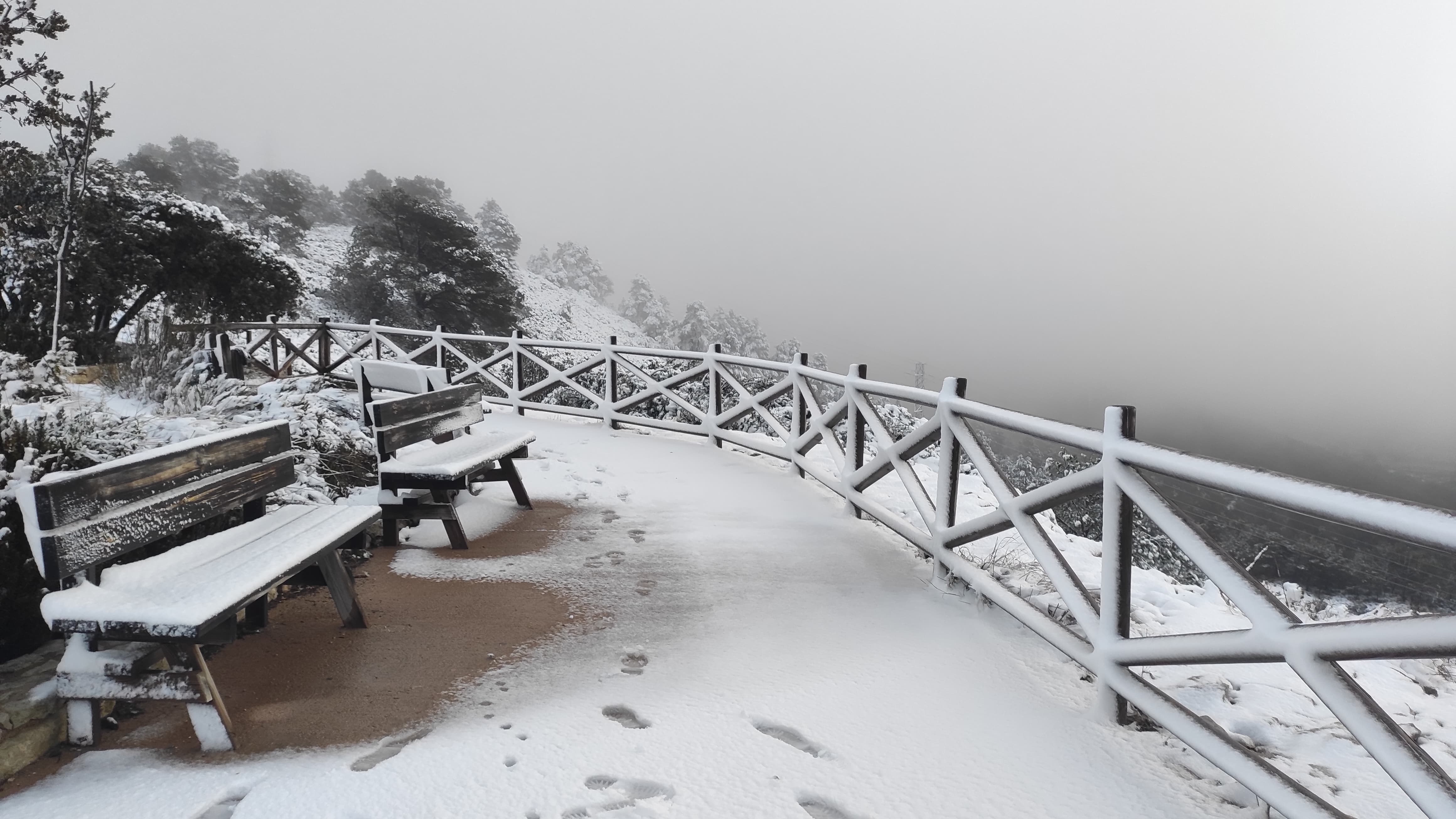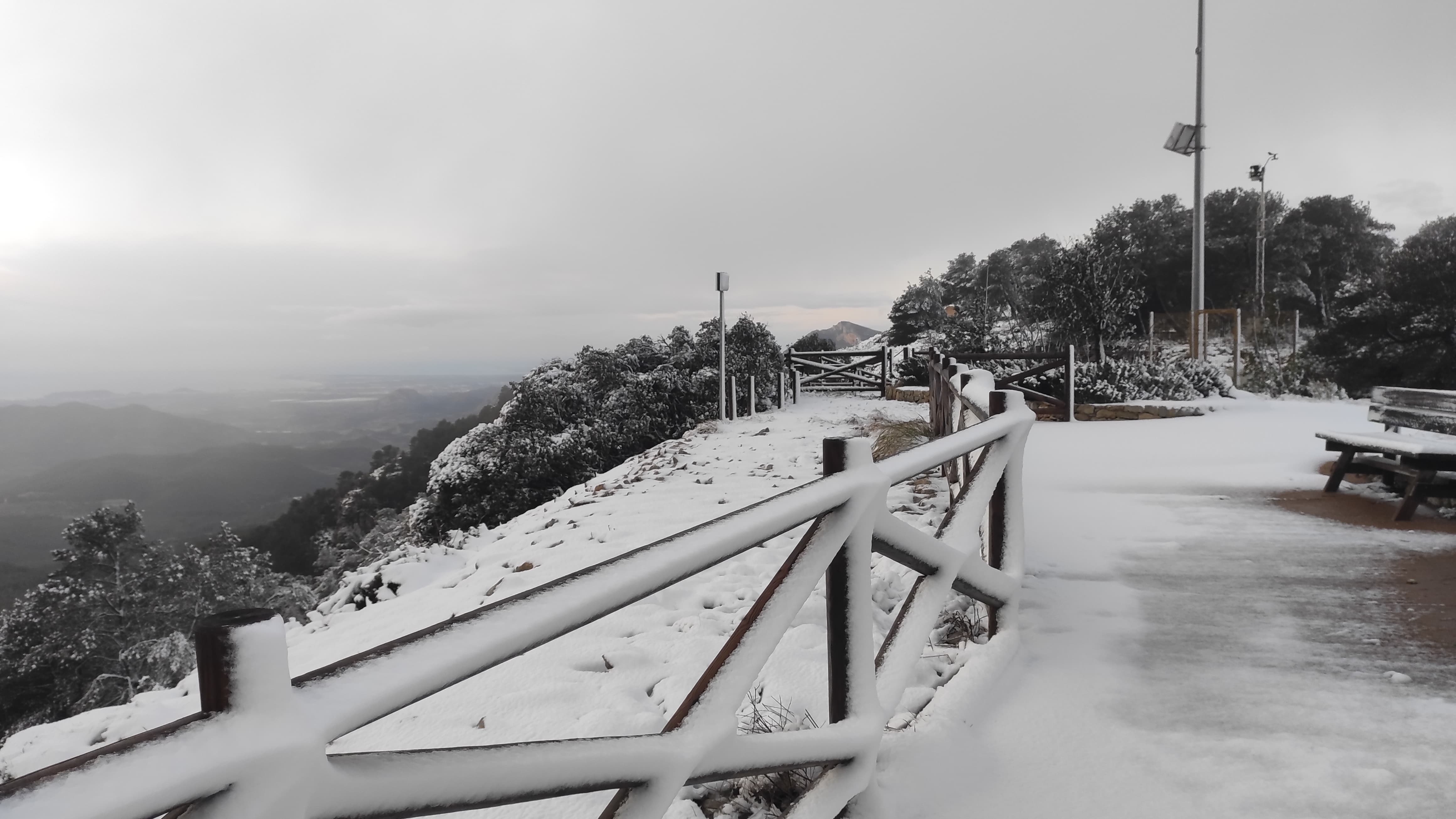 No ens hem trobat massa, algun veí d'Onil i Alcoi passejant amb el gos, i un parell de fotògrafs d'Alacant. Tots intentant gaudir una estona de la neu. Però hi havia molta boira i ha plogut al llarg del matí, així que a poc a poc la neu es desfà. A més, per als pròxims dies es preveu una lleugera pujada de les temperatures i no hi ha previsió de pluja, així que la neu ens ha fet una visita ràpida.