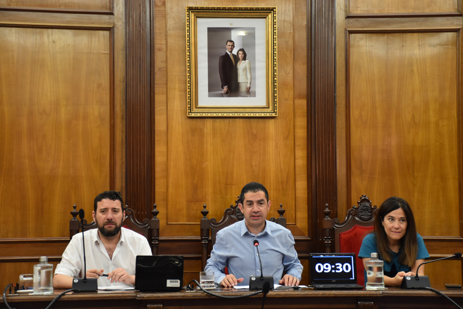 El saló plenari d'Alcoi ja ha acollit a la nova corporació, amb nous representants en la meitat dels seients dels regidors. El primer canvi que s'ha notat és en la taula principal, on no ja veiem a Jordi Martínez que passa a la bancada dels regidors socialistes, i el seu lloc l'ocupa el vicealcalde de Compromís Álex Cerradelo.
