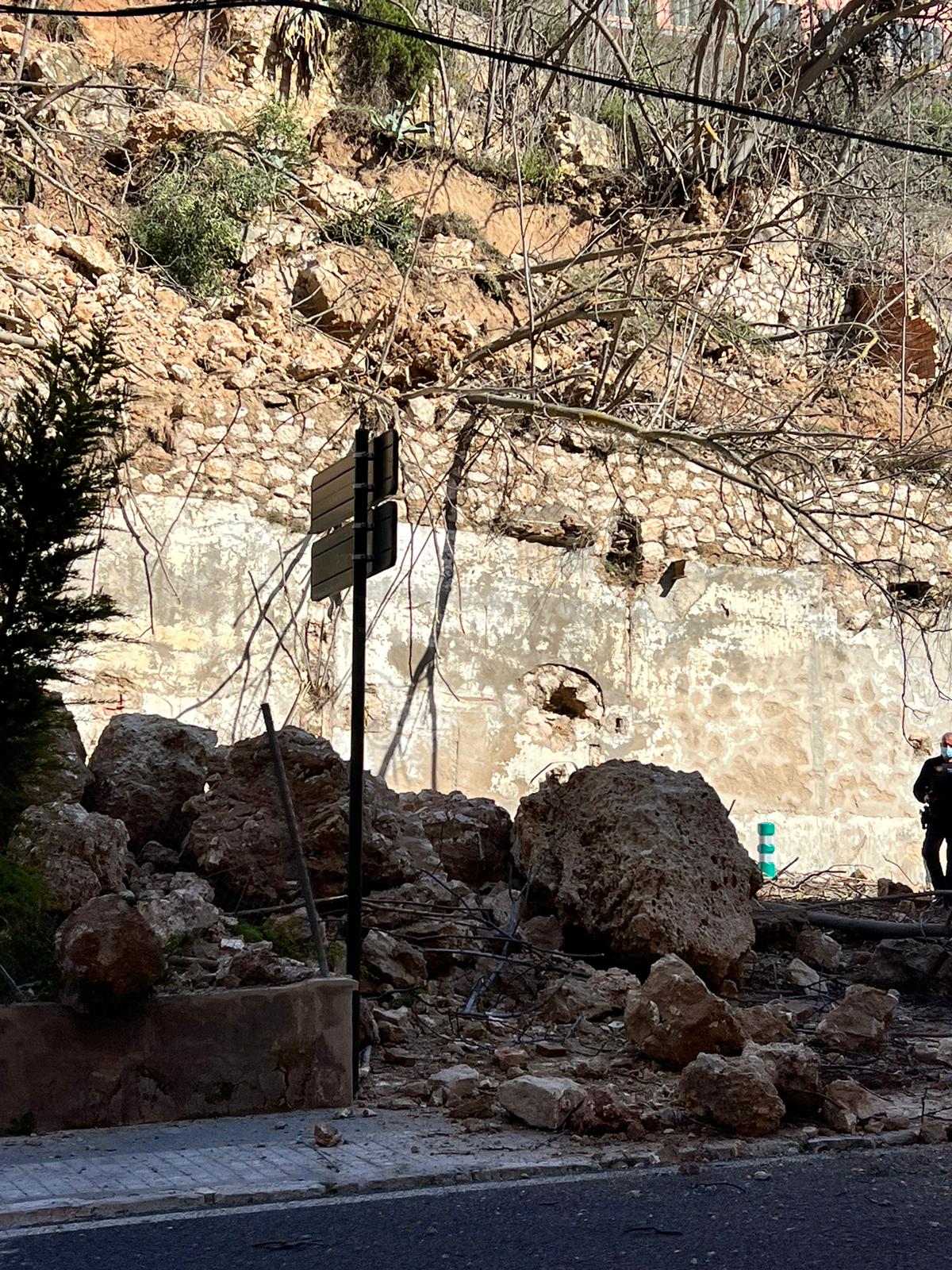 Des de l'Ajuntament asseguren que no hi ha perill, però desmuntaran el marge per precaució. De moment, l'accés a la ciutat per l'antiga carretera d'Alacant està tallada i els vehicles han d'entrar pel Pont Fernando Reig o per l'Avinguda d'Elx. Preocupació en el veïnat per la magnitut de les roques que han caigut en les últimes hores.