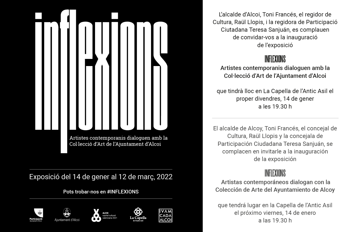 Inflexions és un projecte expositiu on diversos artistes emergents han interpretat obres de la Col·lecció d’Art de l’Ajuntament d’Alcoi.