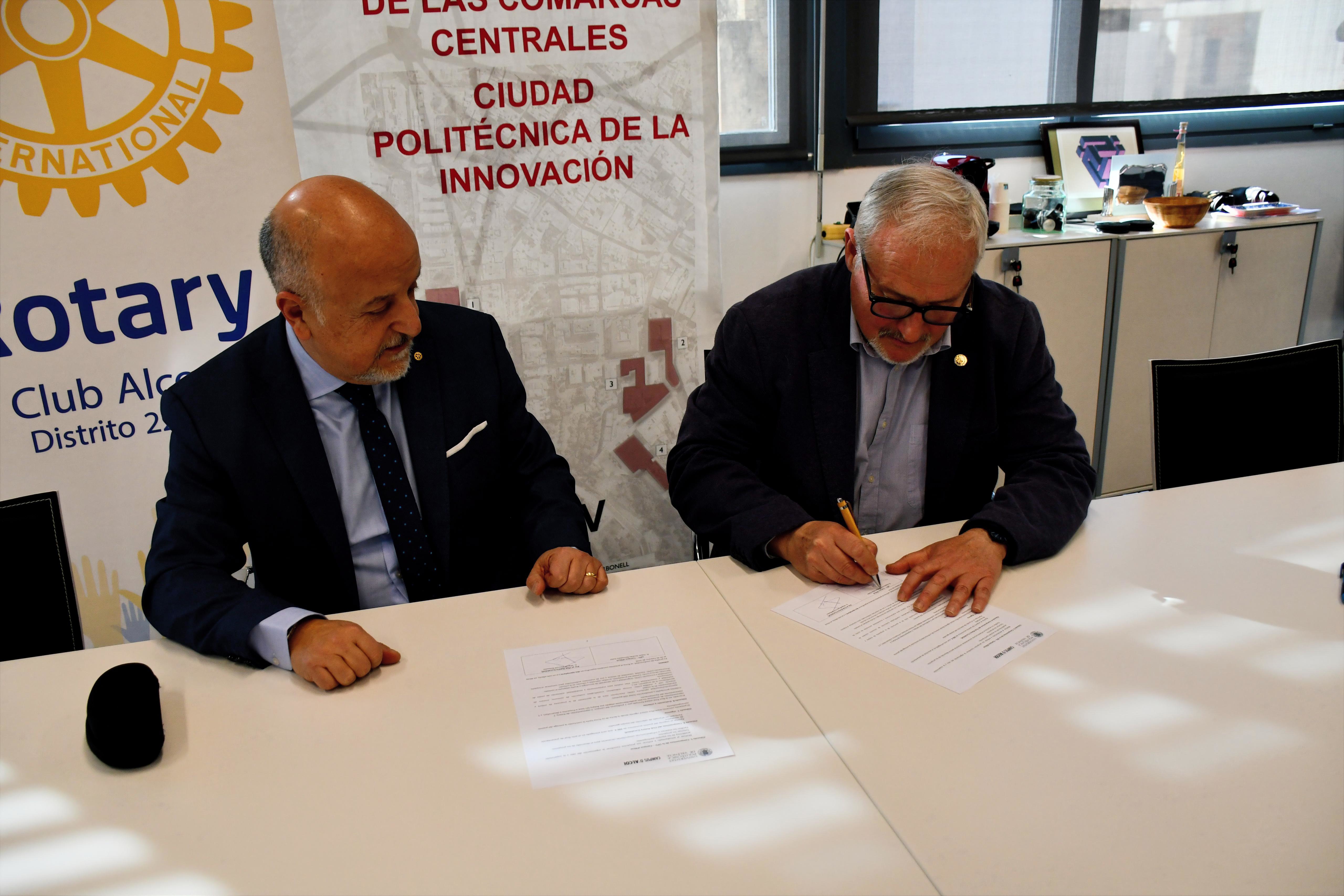 L’acord ha sigut formalitzat pel director del Campus d’Alcoi de la UPV, Pau Bernabeu, i el president del Club Rotary Alcoi, Miguel Pascual, i s’emmarca dins de la col·laboració entre ambdues entitats.