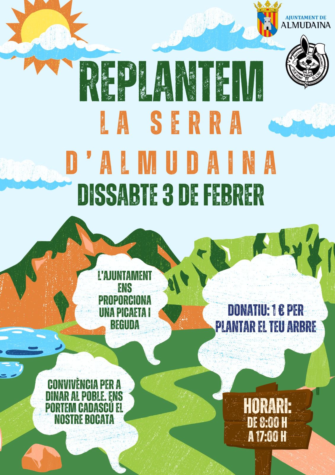 A banda de replantar arbres, la jornada espera ser també de convivència. El consistori proporciona una picadeta i beguda, però el dinar se l’ha de portar cadascú. Per participar cal pagar un euro en concepte de donatiu per arbre plantat.