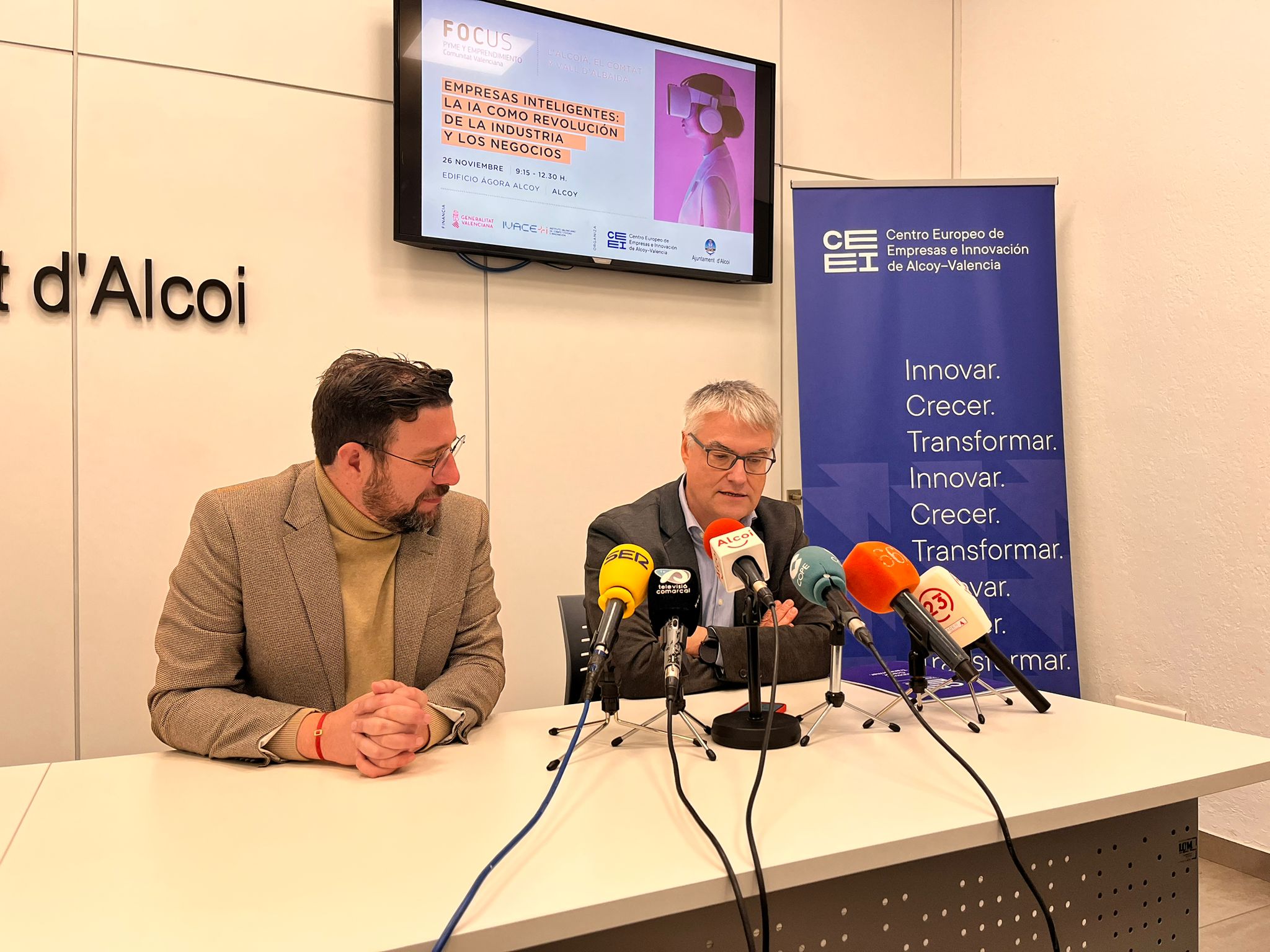 El Centre Europeu d'Empreses Innovadores, CEEI, i l'Ajuntament d'Alcoi, han organitzat de manera conjunta i gràcies al suport de L'IVACE, el Focus 'La IA com revolució de la indústria i els negocis'. L'esdeveniment és aquest 26 de novembre de 9:15h a 12:30h a l'Àgora. Per participar sols cal entrara a aquesta web i inscriure's de manera gratuïta.