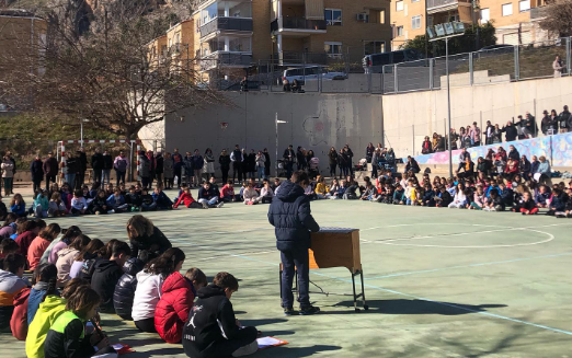 El centre educatiu té en els pròxims mesos gran quantitat d’actes amb la Trobada d’Escoles i el Carnestoltes. L’acte al patí del col·legi ha acabat amb música. La música uneix tothom.